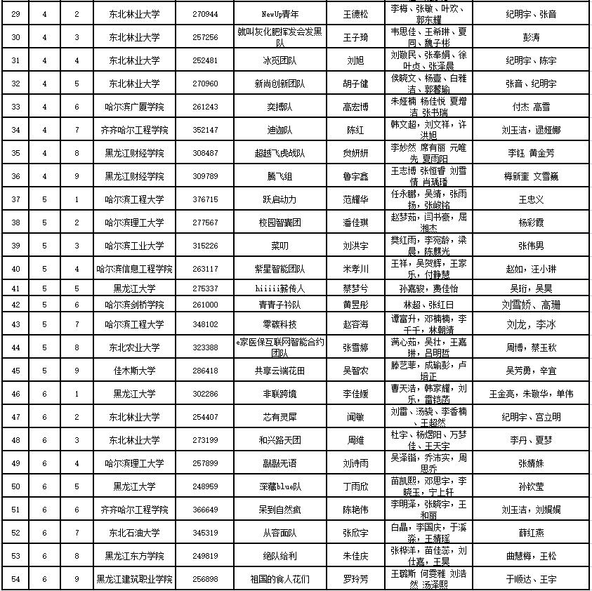 附:第十二届全国大学生电子商务“创新、创意及创业”挑战赛黑龙江赛区省级选拔赛队伍排名