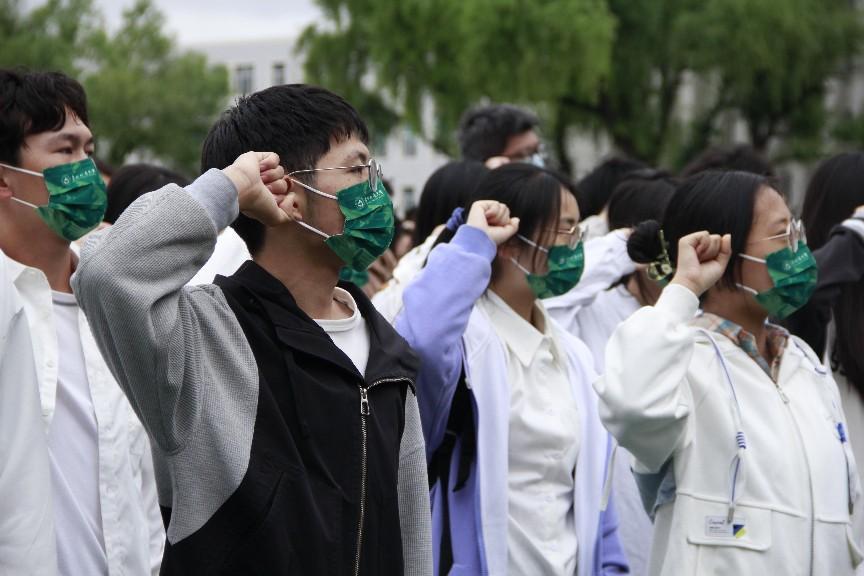 材料科学与工程学院2018级林业工程类成栋班的李晓君同学作为领誓人带领现场全体毕业生在国旗下庄严宣誓:传承红色基因,践行初心使命;赓续东林精神,建设锦绣丹青;用努力行爱国之志,用奋斗圆强国之梦,以青春荣光向母校70周年华诞献礼!洪亮的誓言回荡在清晨的东林校园中。