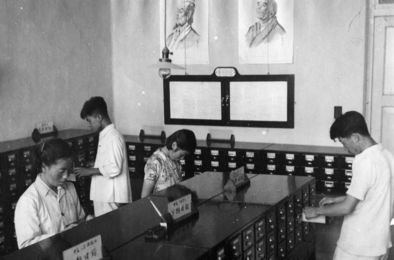 早期,学生在图书馆查阅资料