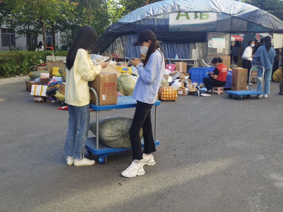 为了让新生入校后第一时间补充备品,迎新当天清晨6点,后勤人就已经开始布置三处迎新摊位。注重服务细节,保证服务质量,让新生们感受到来自东林的浓浓关爱和温暖。