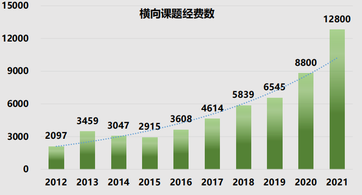 2021年至今,学校纵、横向科研项目累计合同经费4.38亿元,其中横向合同经费2.01亿元。横向课题中100万元以上的科技开发及服务项目达到34项,这从一个侧面体现了学校服务社会的能力明显提升。