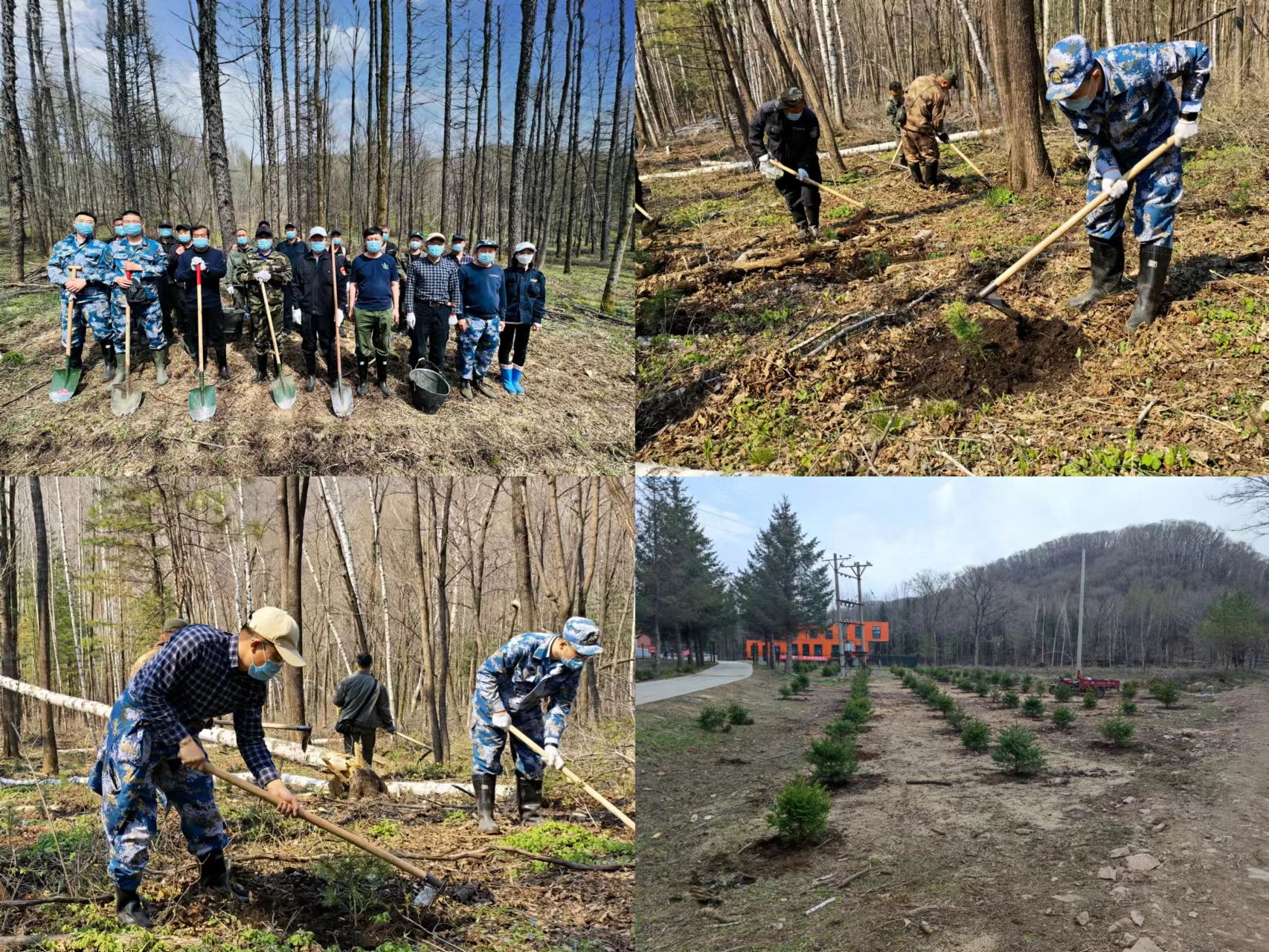 2022年5月,学校在帽儿山实验林场栽植水曲柳、红松等国家二级保护树种幼苗10000余株,为建设绿水青山贡献力量
