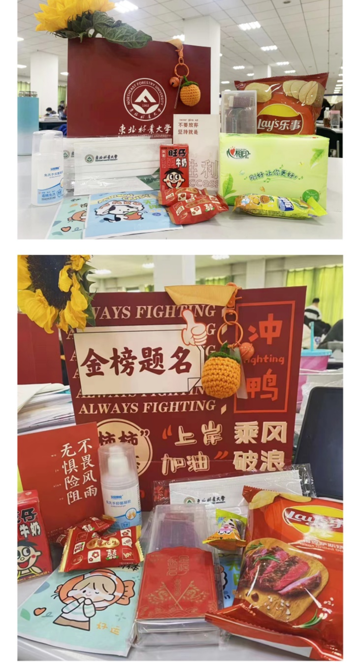 收到“考研加油包”的考研学子们纷纷在朋友圈晒图:“这个好事‘花’生又可爱又好吃”“‘柿柿’如意挂件正好可以用来当我的钥匙扣”“我们一定会像向日葵一样向阳生长,拥有光明的未来”……大家一致表示,学校的“考研加油包”就像是为他们打了一针强心剂,最后冲刺阶段一定会拼尽全力,学有所成。