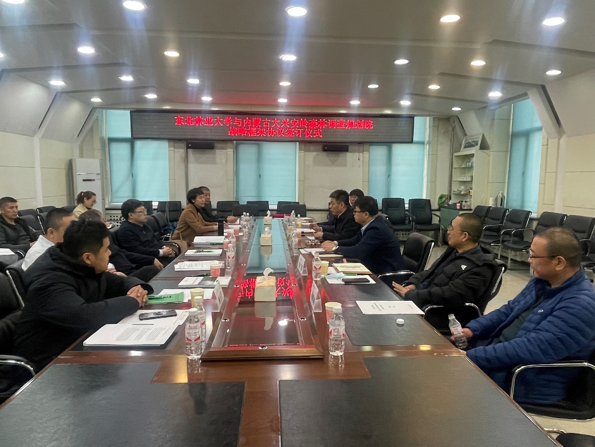 李凤日代表学校对内蒙古大兴安岭森林调查规划院一行人专程赴我校开展校企合作表示热烈欢迎,感谢内蒙古大兴安岭森林调查规划院长期以来对东林发展的大力支持。他表示,东林的发展离不开林草基层单位的支持和帮助,战略合作框架协议的签订将使双方的合作进入新阶段,他期待在“十四五”期间,双方的合作更加深入和全面,共同为内蒙古乃至全国林草事业的发展作出新的贡献。
