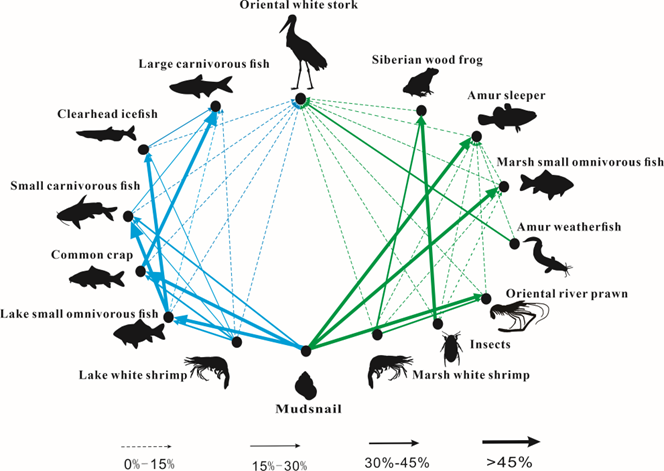 三江平原兴凯湖地区东方白鹳典型食物网结构模型