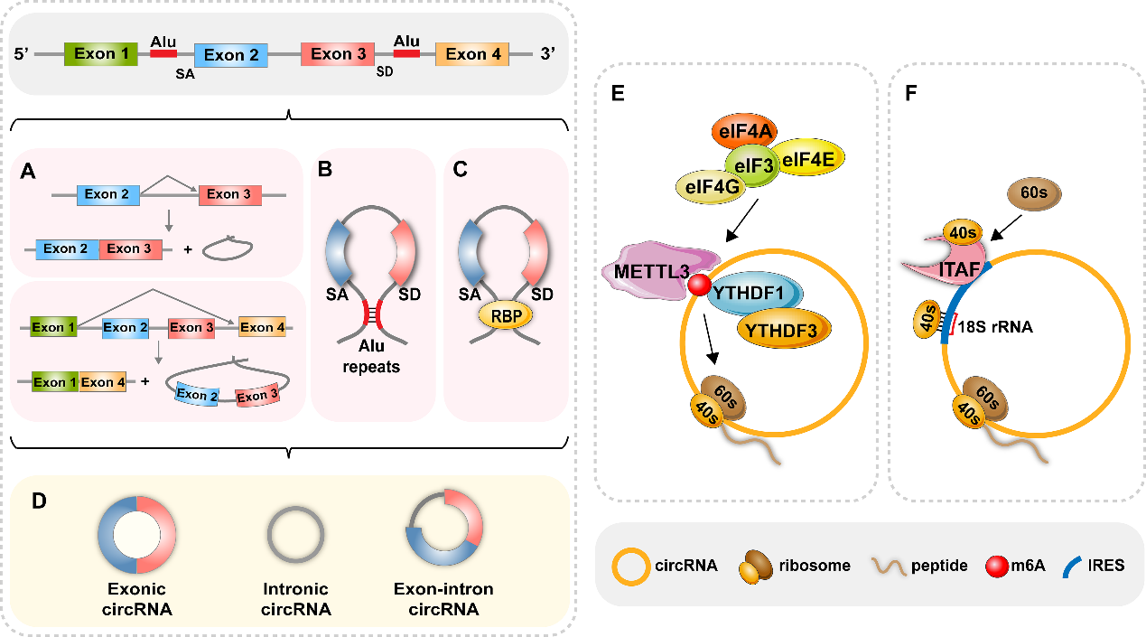 图1.CircRNA的生物发生和翻译起始机制