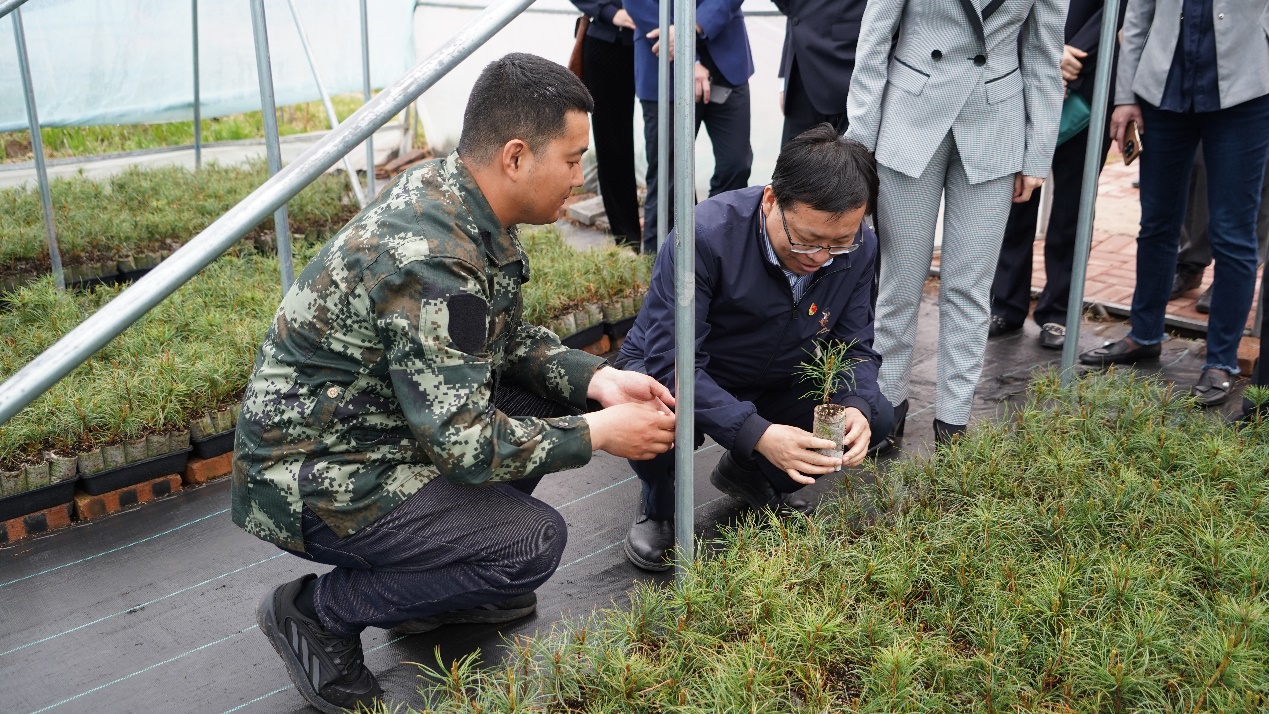 共同栽种林木遗传育种学科科研团队最新培育的“紫霞一号”与引进的“西伯利亚红松”树苗