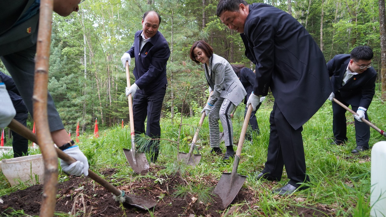 在抗联遗址老钱柜纪念碑下,林学院一行人员与林业局主要负责同志共同栽种由东北林业大学林学院林木遗传育种学科科研团队最新培育的“紫霞一号”与引进的“西伯利亚红松”树苗,成为双方合作的见证,寓意新时代的林业人必将以英雄先烈为榜样,传承林业精神,努力为祖国生态保护事业贡献力量。希望今后将东林技术扎根在上甘岭,让更多的林学学子在此生根发芽,让绿色情怀的根扎的更深,苗长的更好。