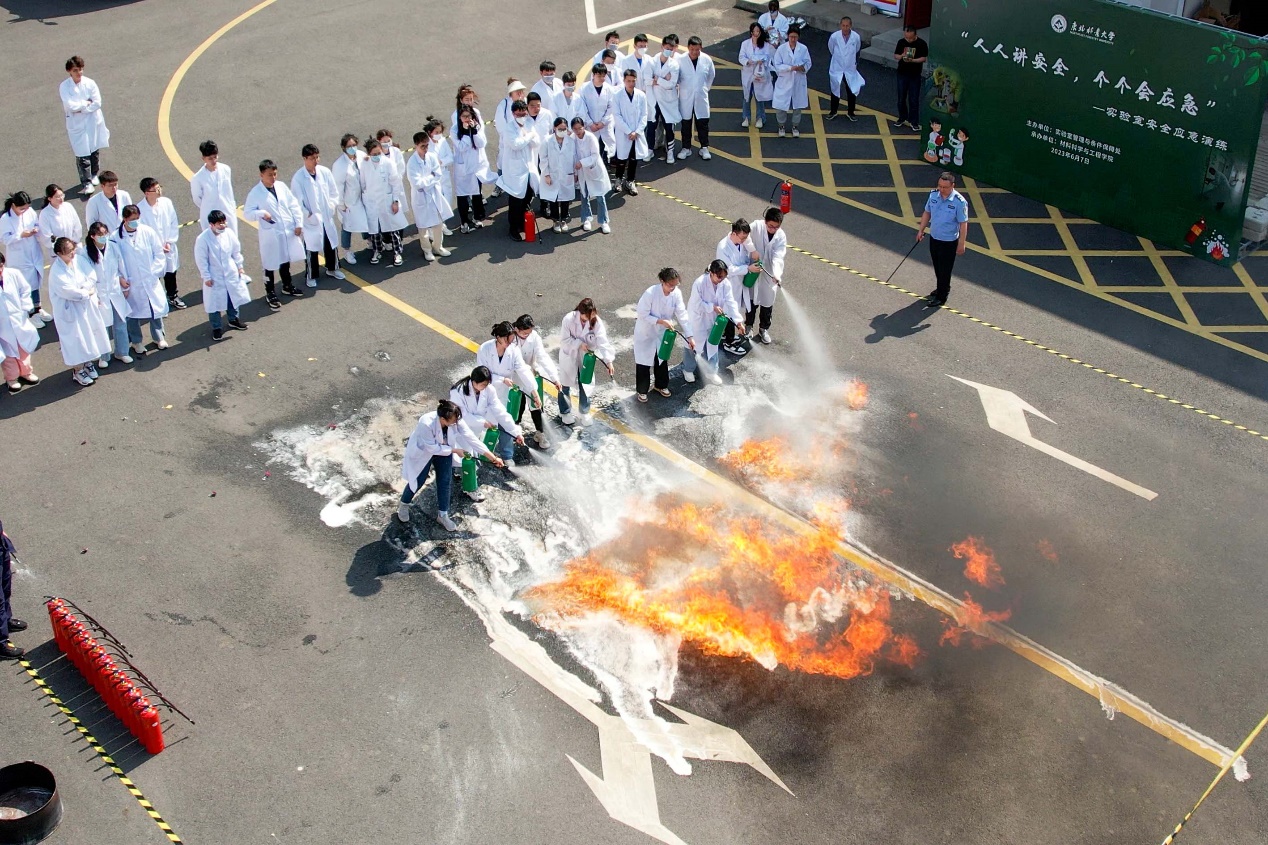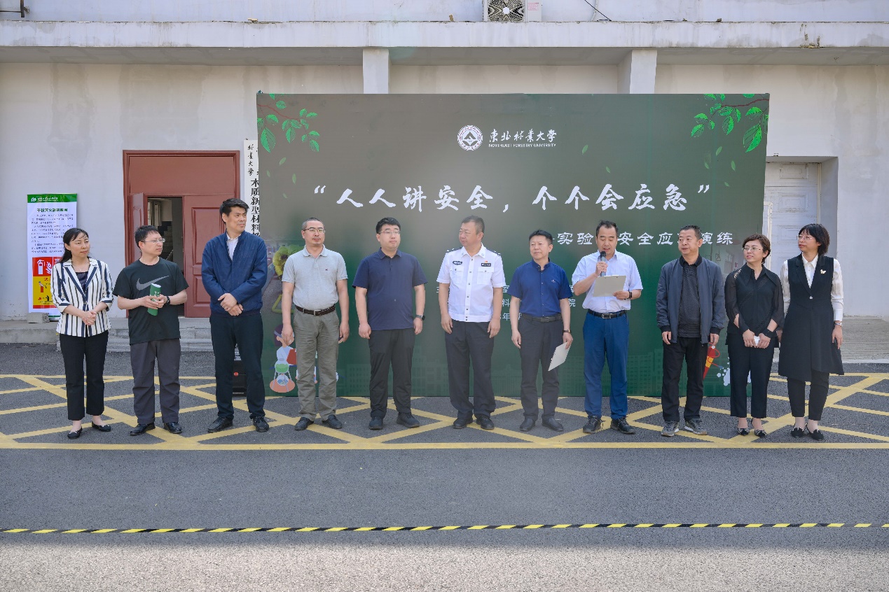 实验室管理处、保卫处、研究生院、材料学院、林学院、生命学院、动保学院和化资学院负责人,学校实验室安全督查组成员,材料学院118名研究生参加了演练活动。
