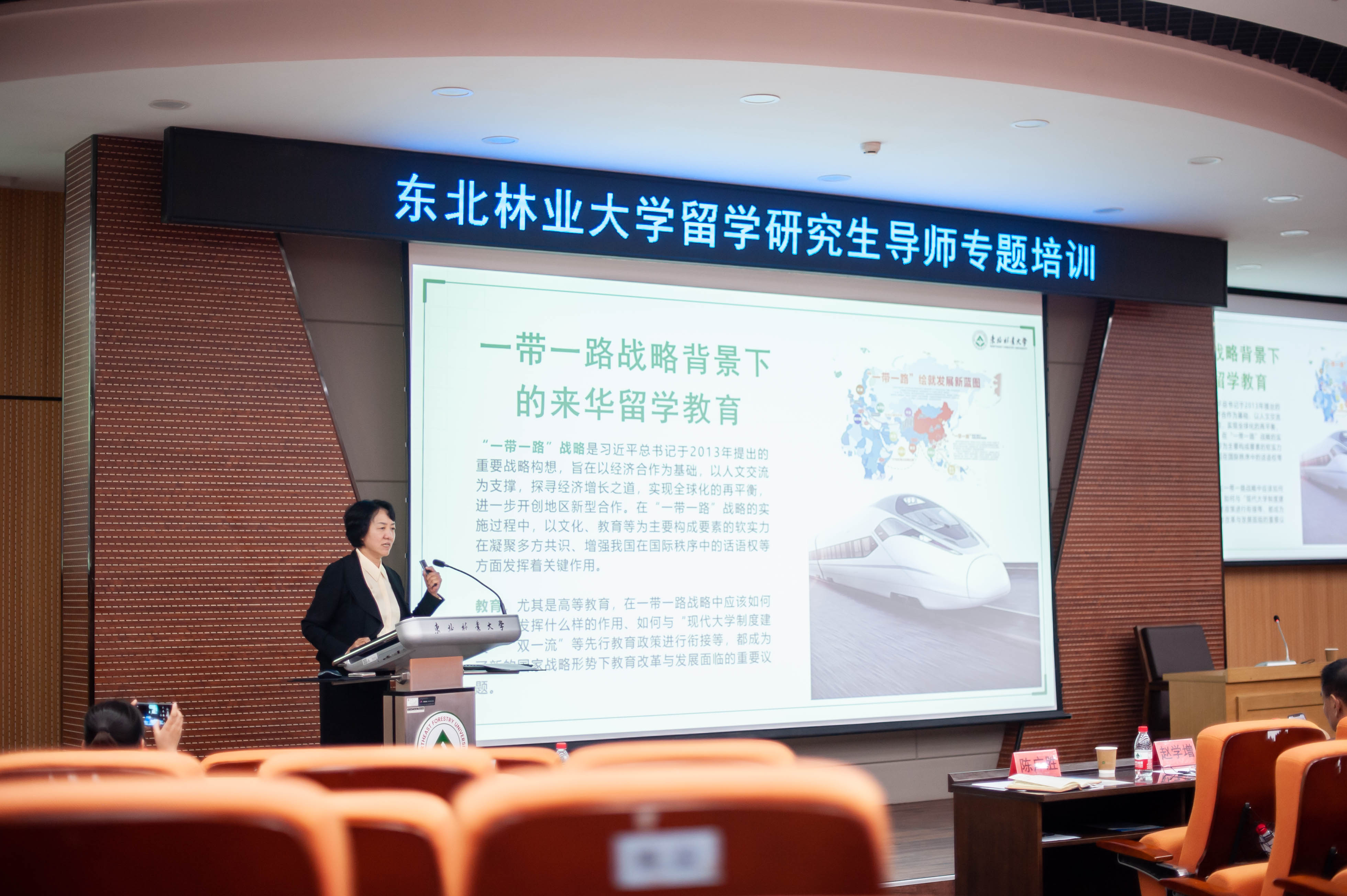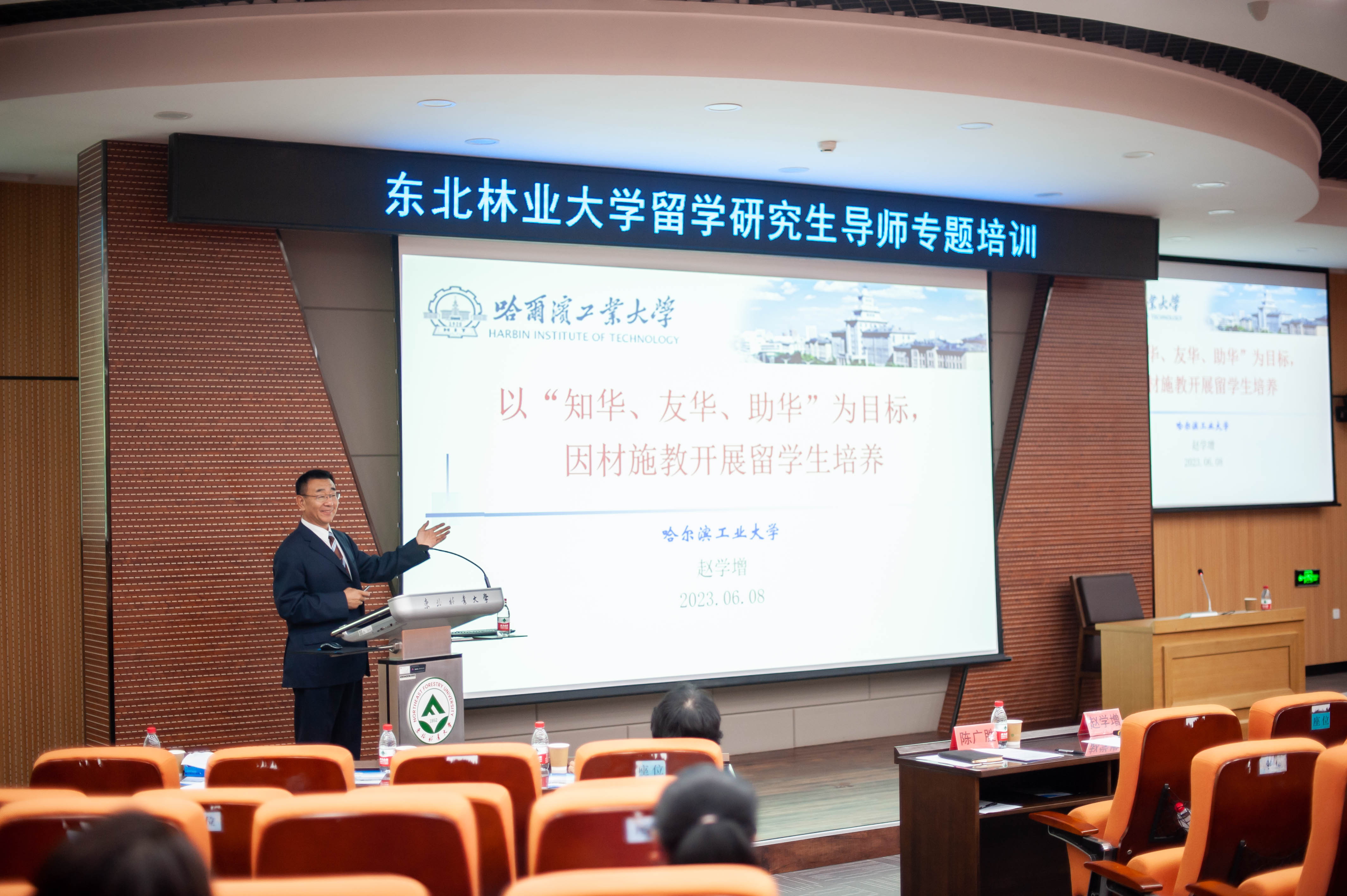 为深入推进主题教育,进一步加强留学研究生导师能力建设,不断提升留学研究生培养质量,6月8日下午,东北林业大学留学研究生导师专题培训在奥林学院101会议室举行。学校特邀国家安全机关徐警官、哈尔滨工业大学赵学增教授以及我校曹玉昆教授作专题报告,学校留学研究生导师、留管干部以及外事干部参加了培训。会议由研究生院常务副院长陈广胜主持。