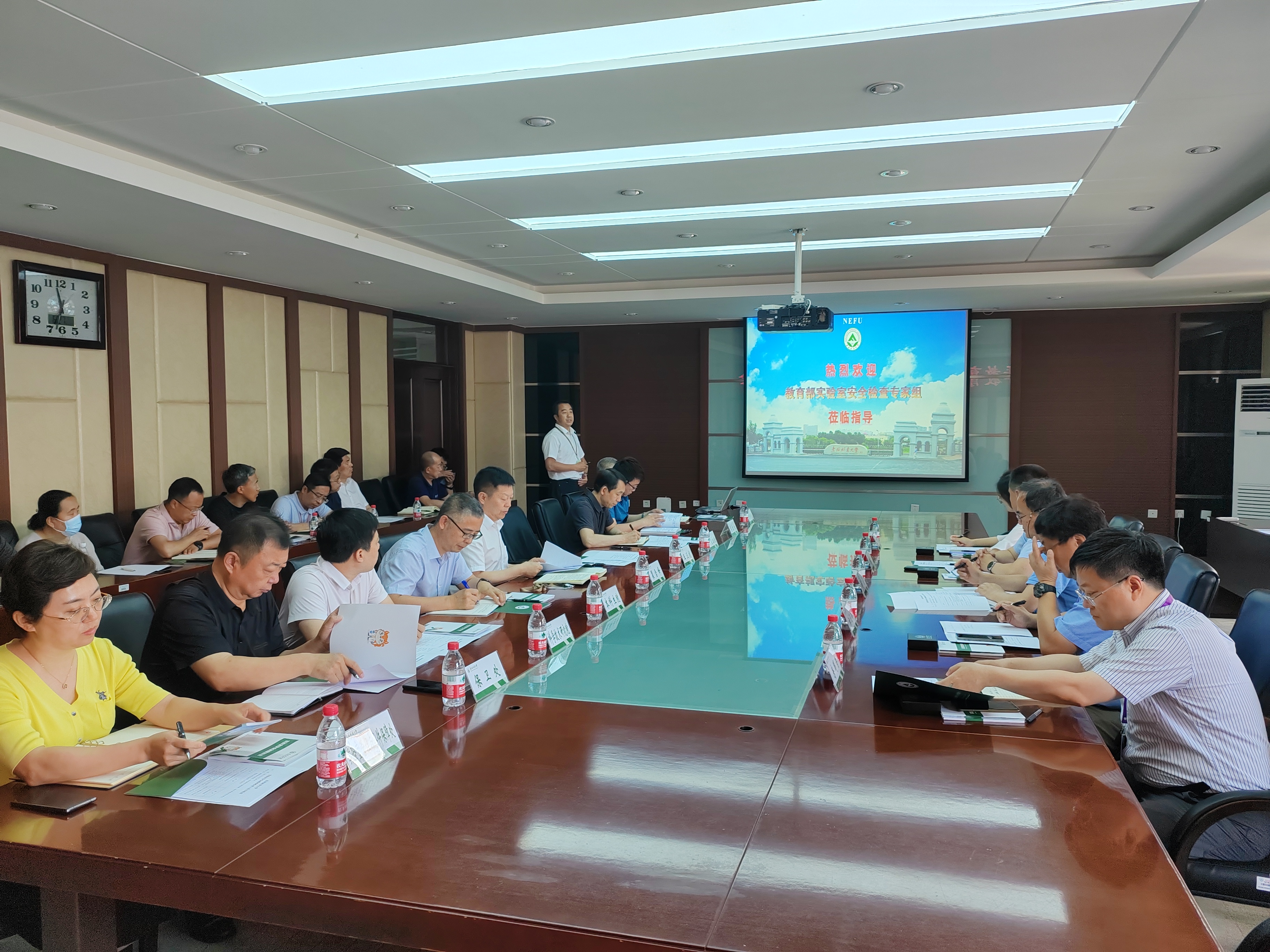 教育部检查组分两组对林学院、材料科学与工程学院、化学化工与资源利用学院、野生动物与自然保护地学院、生命科学学院、园林学院、机电工程学院等7个学院的33间实验室开展了现场检查,详细查阅了学校组织体系、规章制度、安全检查、培训准入、实验室分级分类、应急预案、应急演练、危化品管理等实验室安全管理档案材料,并与相关人员进行了交流。