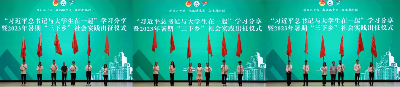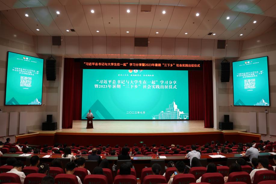 7月10日下午,学校“习近平总书记和大学生在一起”学习分享暨2023年暑期“三下乡”社会实践出征仪式在科学会堂举行。学校党委常委、副校长雒文虎参加仪式。