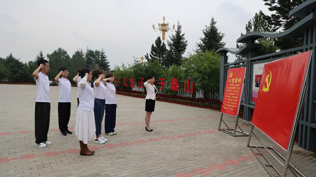 师生党员在展览馆门口重温入党誓词