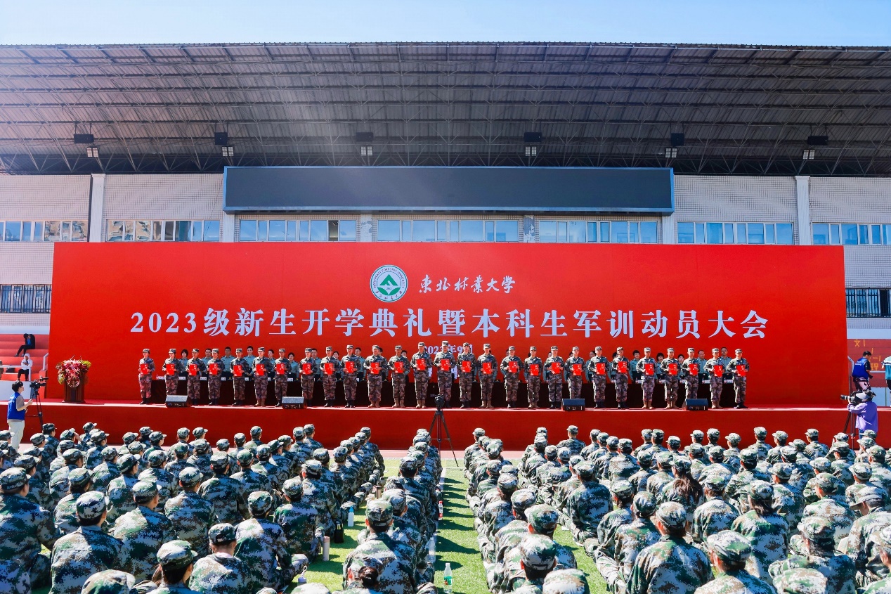 校长宋文龙宣读东北林业大学2023级学生军训团组成人员名单。