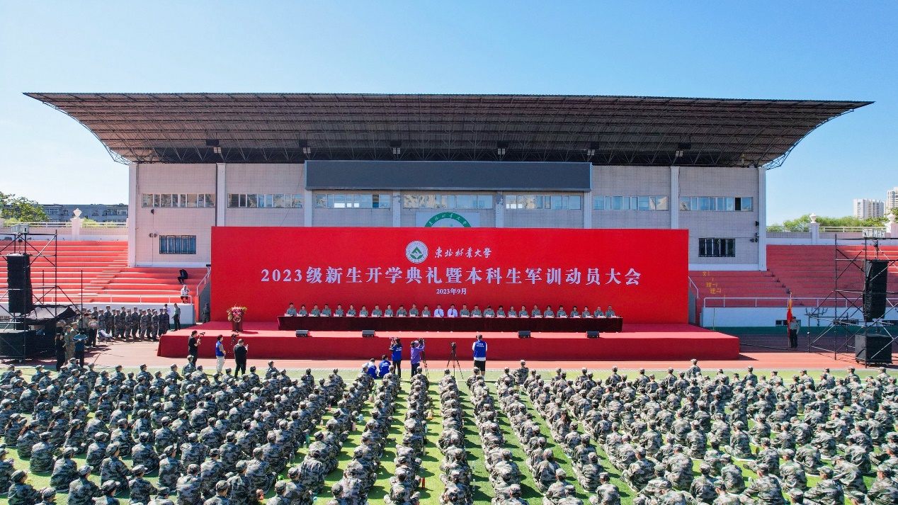 9月5日上午,学校新生开学典礼结束后,2023级本科生军训动员大会在田径场举行。学校党委书记张志坤,党委副书记、校长宋文龙,来校承训单位、中国人民解放军某部队副旅长王铁军,党委常委、副校长、2023级学生军训团政委孙猛,党委常委、副校长、2023级学生军训团团长刘守新,军训团参谋部、政治处、各营营长和教导员等军训团主要成员、参训官兵,由我校退伍大学生、国旗护卫队教官、国防教育中心学生组成的学生教官,以及学校2023级全体本科新生参加动员大会。学校党委学生工作部部长、武装部部长、学生处处长、学生军训团参谋长王博主持大会。