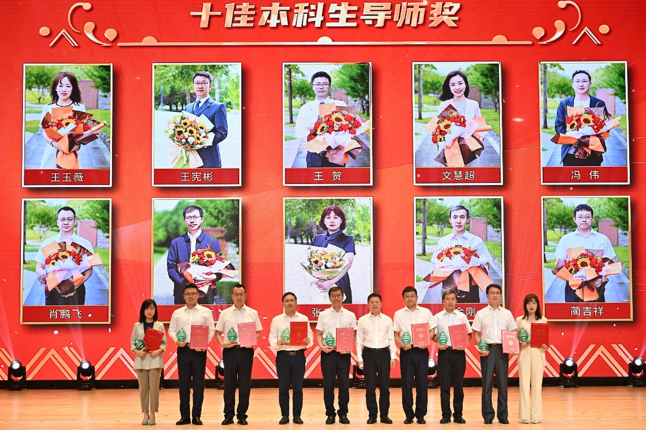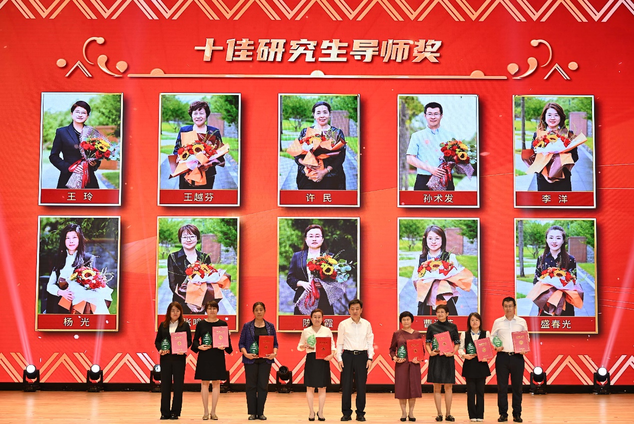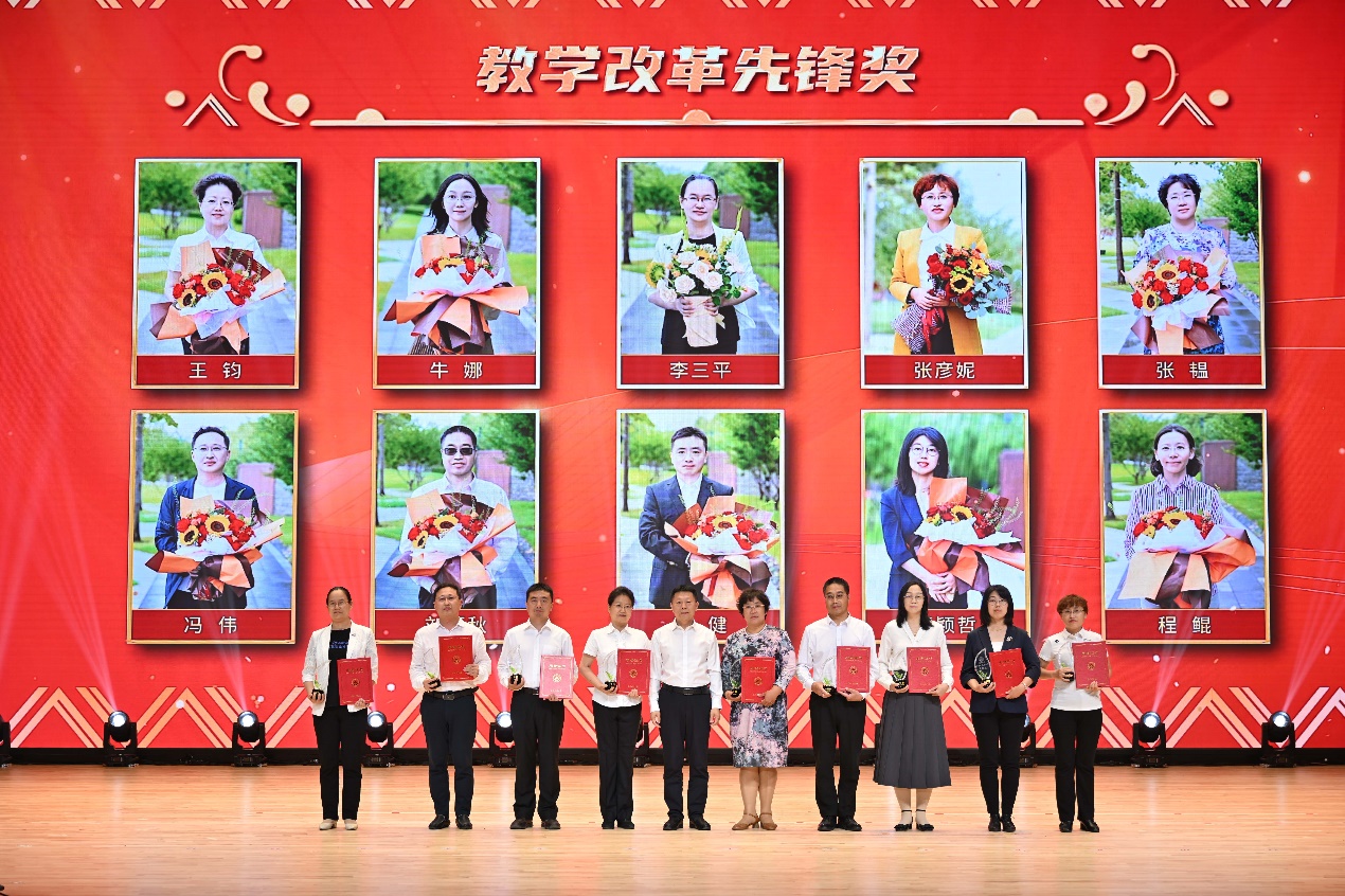校领导依次为获奖个人和集体颁奖。宋吉红颁发“教学质量特等奖”;翟雪峰颁发“教学改革先锋奖”“十佳本科生导师奖”;刘守新颁发“十佳研究生导师奖”;孙猛颁发“优秀基层教学组织颁奖”;陈文慧颁发“研究生‘五好’导学团队奖”;李顺龙为获得师德先进个人颁奖;宋文龙为获奖的师德师风建设先进集体颁奖。