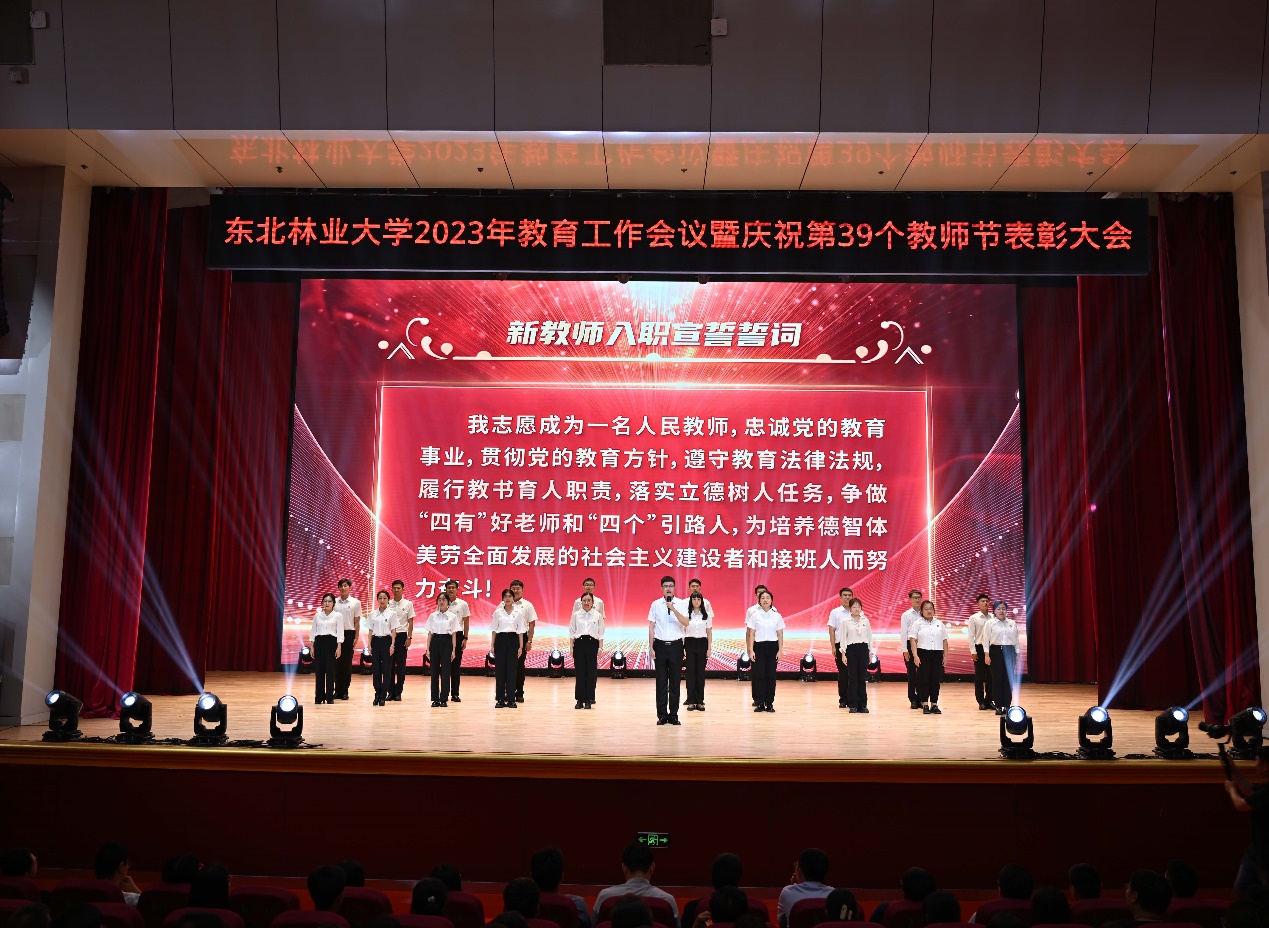 在庆祝第39个教师节表彰大会上,宋吉红宣读了《东北林业大学关于表彰2023年成栋教学荣誉奖的决定》及《中共东北林业大学委员会关于表彰2022~2023年度师德师风建设先进集体和师德先进个人的决定》。