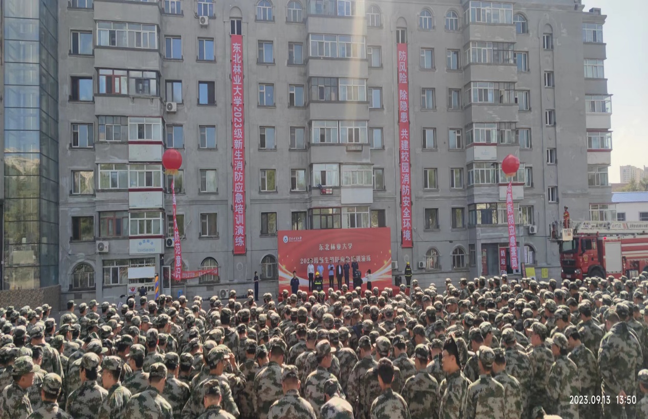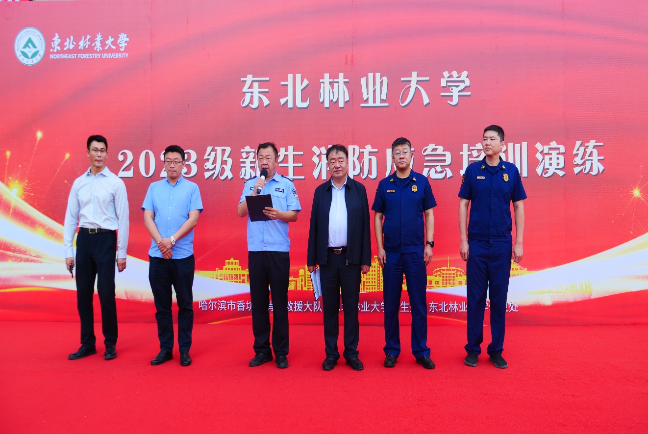 学校党委常委、副校长孙猛,学生处处长王博、保卫处处长李长松、宣传部副部长王乙参加演练活动。哈尔滨市香坊区消防救援大队协助参与培训,大队长纪中凯、副大队长毕胜进行专业指导。李长松主持演练活动。