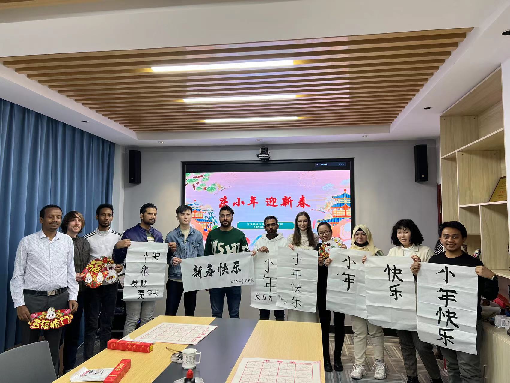 东北林业大学留学生在中国“小年”创作书法