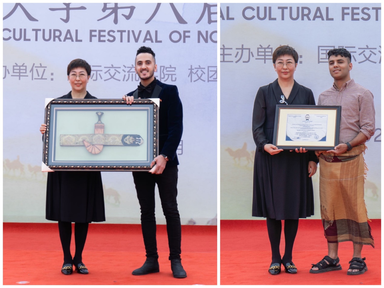 在前不久东北林业大学举行的第八届国际文化节开幕式上,东北林业大学收获了一份特别的“礼物”——也门共和国驻华大使Dr.Mohammed Al-Maitami先生向东北林业大学签发感谢信,表达对学校来华留学工作的认可和中也友好的诚挚祝愿。也门籍留学生卡卡西也送上寓意“勇气”和“友谊”的“弯刀”礼物。