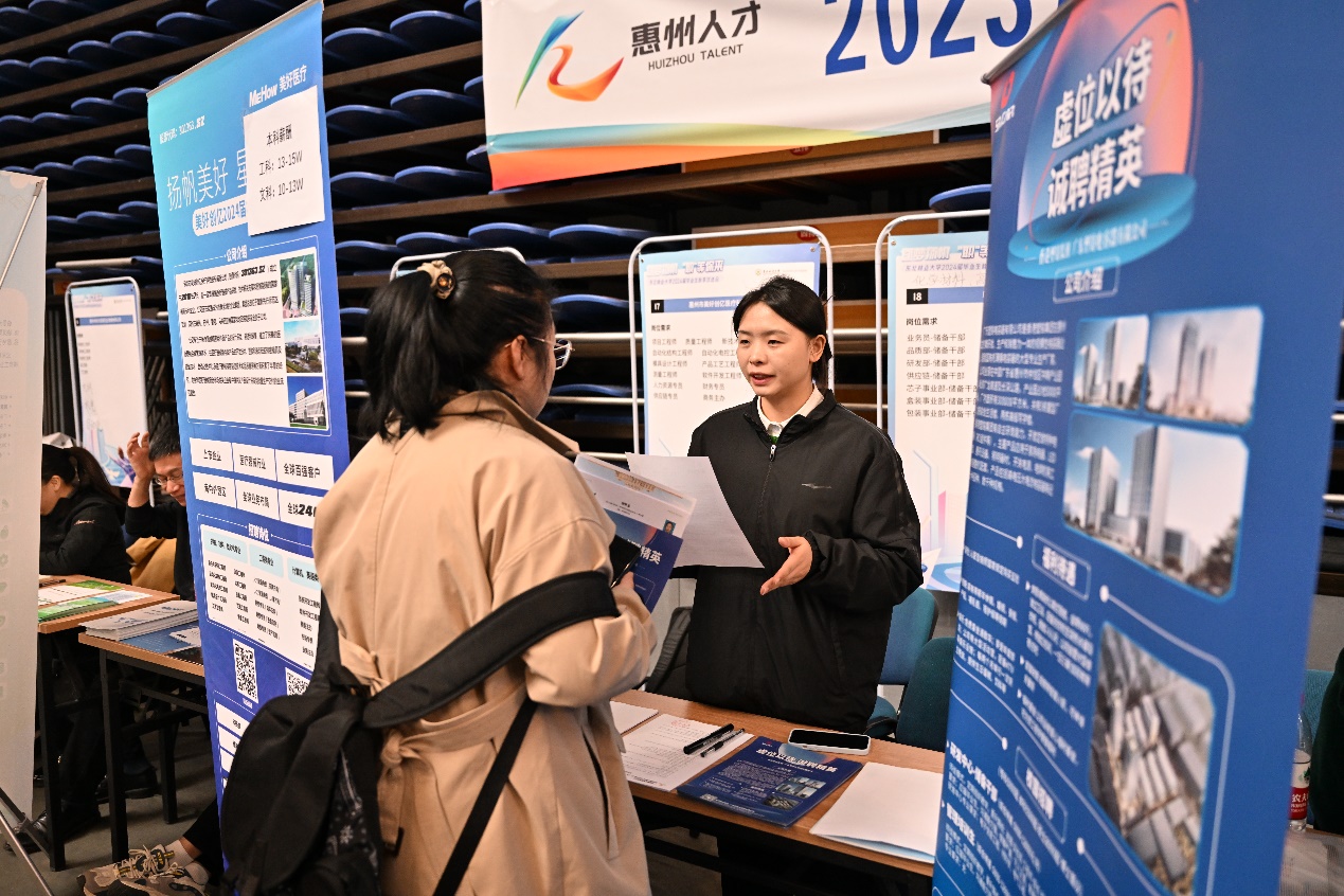 当前我校毕业生前往粤港澳大湾区等经济发达地区就业意愿较为强烈,为搭建起东林和大湾区沟通交流的有效渠道和平台,为东林学子创造更多发展机遇和就业机会,本次双选会期间,学校还举办了“湾区未来·才聚惠州”——2023广东惠州万名青年大学生招引行动哈尔滨专场推介招聘会,来自惠州市委组织部、市人社局、市林业局的相关负责人现场进行了人才政策宣讲及咨询。哈尔滨各高校代表以及有意愿前往大湾区建功立业的学校本研毕业生代表参加了本次推介招聘会。
