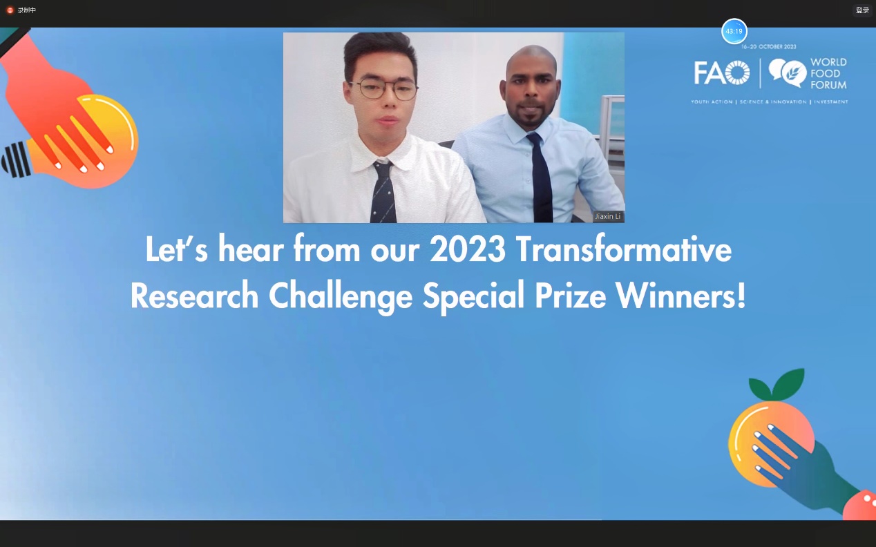 该奖项由联合国粮农组织设立,旨在鼓励青年通过科学与创新,改善农业食品体系,消除饥饿,推动全球可持续发展。