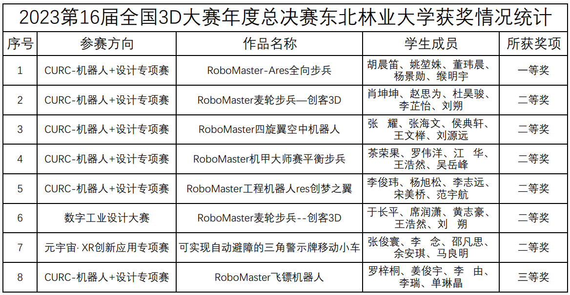 近日,全国三维数字化创新设计大赛(3D大赛)组委会公布了第十六届全国3D大赛年度总决赛榜单,我校共有8支队伍进入全国总决赛,勇夺全国一等奖1项、二等奖6项和三等奖1项。机电工程学院教师刘林被评为优秀指导教师,我校获得优秀组织奖。