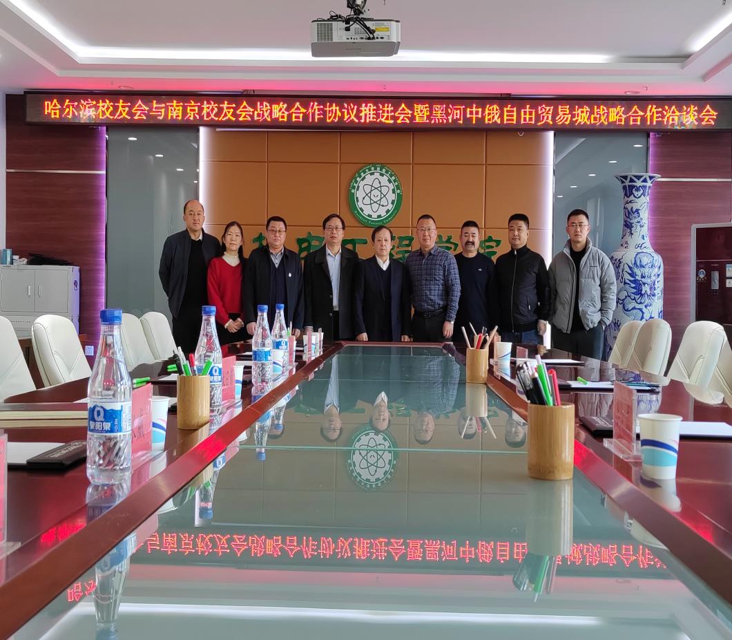 12月20日上午,我校哈尔滨校友会与南京校友会战略合作协议推进会暨黑河中俄自由贸易城战略合作洽谈会在成栋楼713召开,本次会议以“聚友情、建平台、融资源、共发展”为主题,两地校友会负责同志及企业代表展开了多角度合作思考,达成了对俄贸易初步方案。学校党委常委、副校长李顺龙,校友办公室主任姚远,机电工程学院党委副书记郑燕参加会议,会议由哈尔滨校友会秘书长黄冬冬主持。