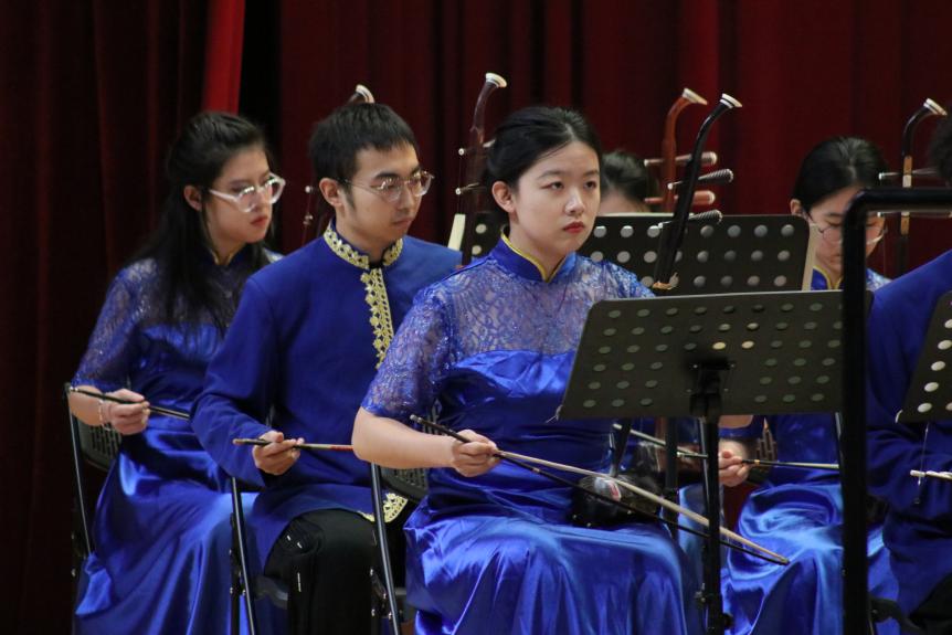 整场音乐会分为前、中、后3场,分别由大学生艺术团民族管弦乐团、合唱团、西洋管弦乐团相继完成。