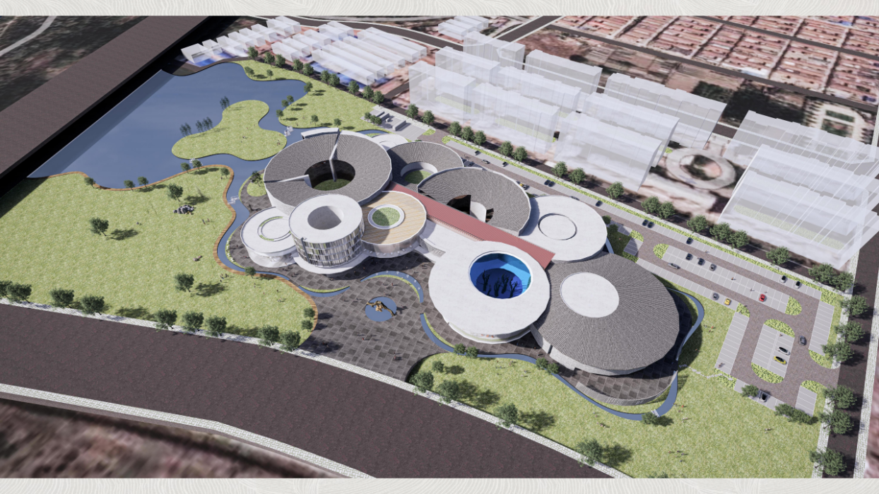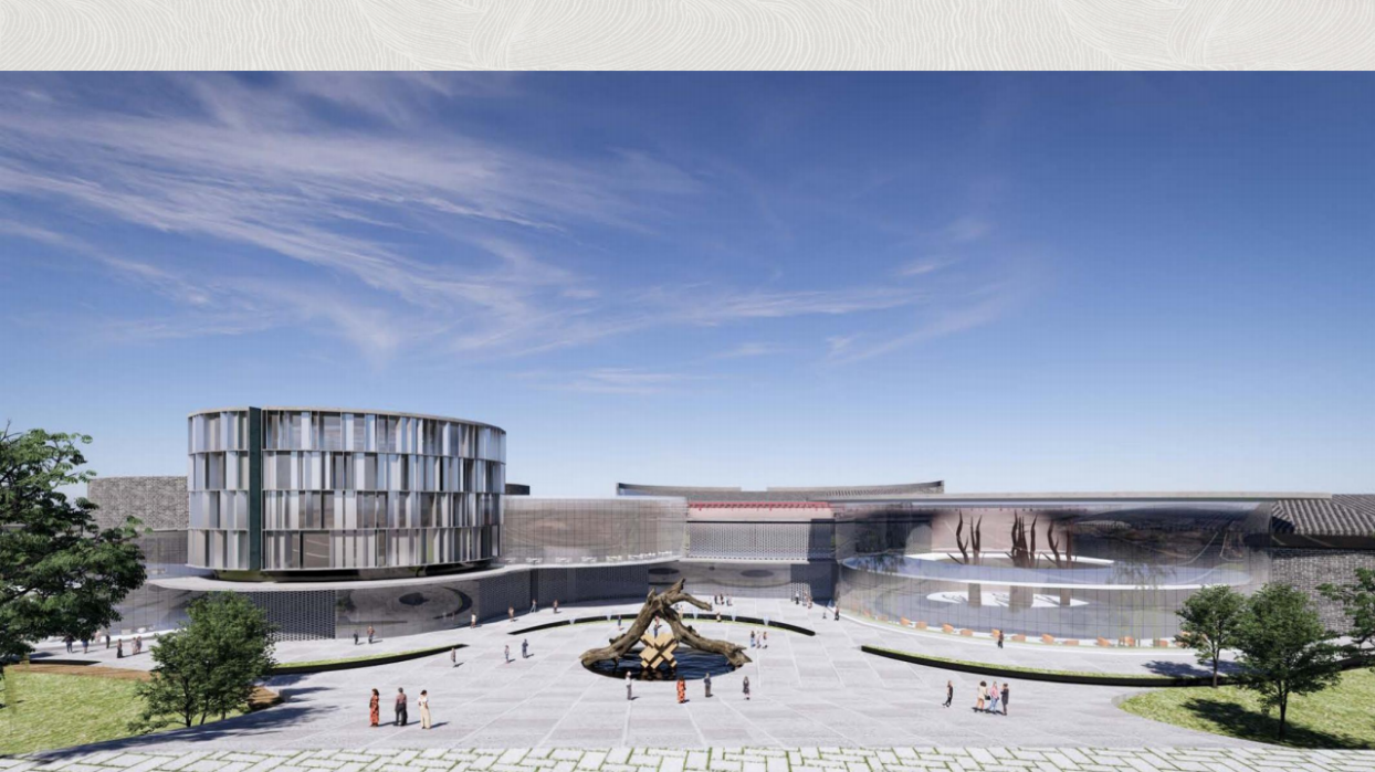 《德州乌木文化艺术博物馆》项目是其中的重点建设项目之一。整体项目由中国建筑设计研究院、东北林业大学、中央美术学院、俄罗斯列宾美院等单位共同完成。该项目位于德城区,运河大道以东、新河西路以北,规划总用地面积约45868平方米。德州乌木博物馆建筑方案设计引入了中国传统建筑土楼群体的概念,由多个圆组成的建筑形态,设计有反映李坚院士学术成就的“李坚考木”等五十六个场景以及休息厅等功能区,屋顶采用中国传统建筑元素的单坡屋顶和平屋顶相结合。德州乌木文化艺术博物馆,致力于通过以乌木为载体,展示中国五千年文化之美,还原历史场景,弘扬传统文化核心美德。本博物馆以独特的乌木雕刻、工艺、家具创作的形式,按照历史时间轴分为十个章节,展示远古夏商周至新中国时代的文化典故,体现中国传统文化中的仁爱、礼仪、诚信等核心美德。同时以中国家具发展史为线索,展示乌木家具的传承与创新,旨在弘扬中华民族千年文化,展示家具艺术的独特魅力。