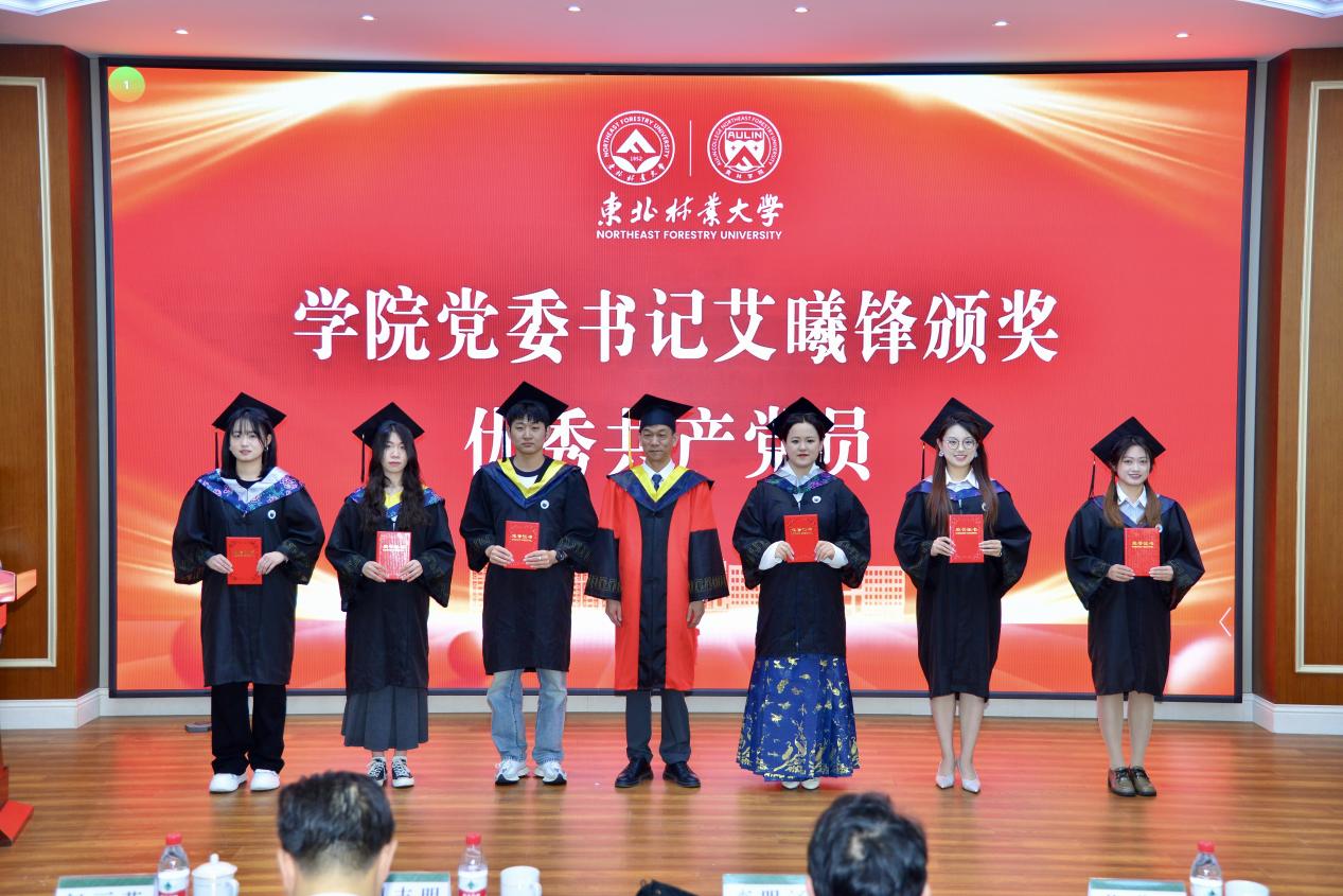副院长赵丽花宣读学院优秀学生共产党员、黑龙江省优秀毕业生名单,党委书记艾曦锋为其颁发证书。