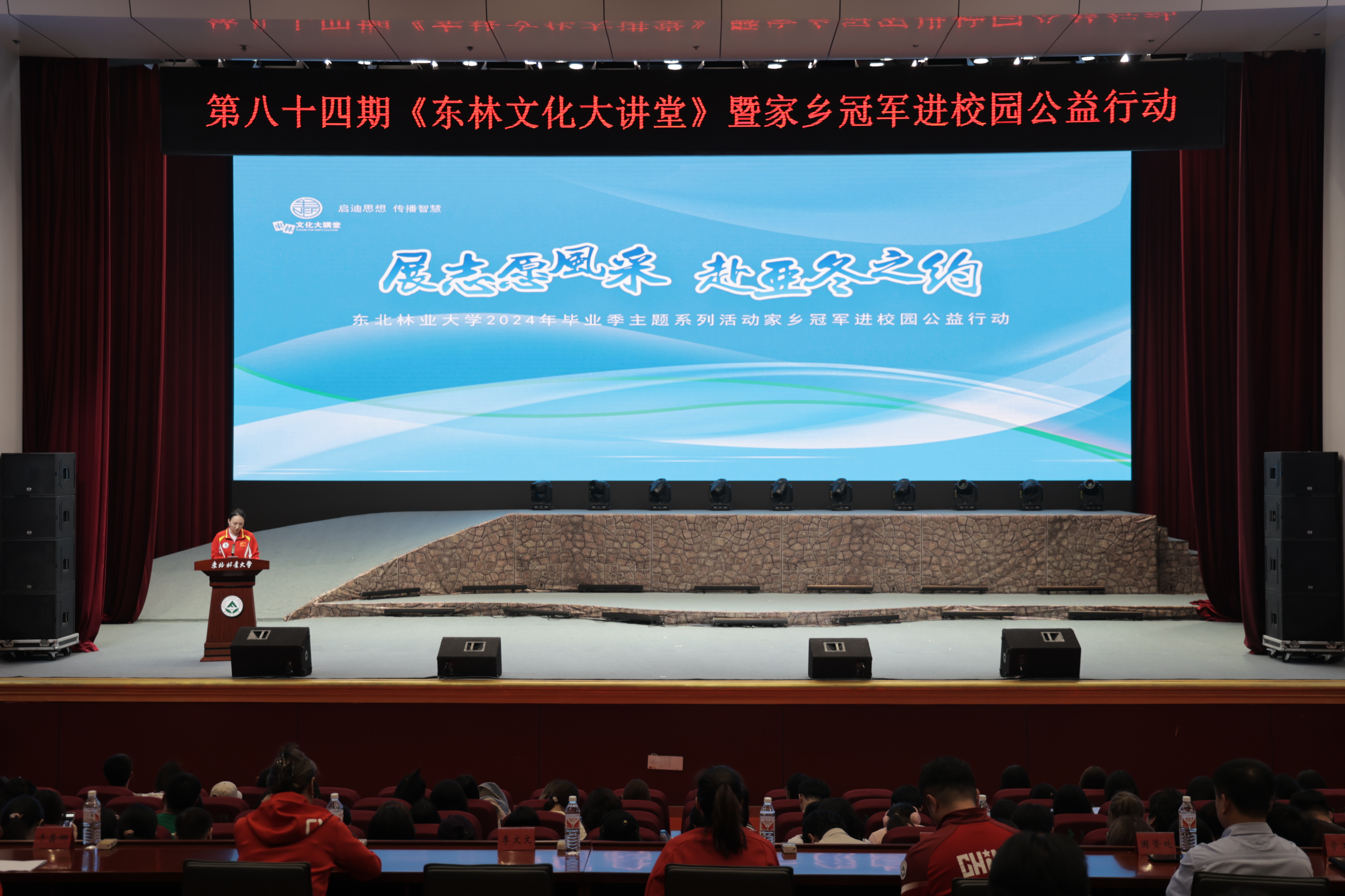 6月14日上午,第八十四期《东林文化大讲堂》暨家乡冠军进校园公益行动在学校科学会堂举办,短道速滑世界冠军李文文、单板滑雪世界冠军李爽、花样滑冰全国冠军朱秋颖、全国冰壶锦标赛冠军于鑫娜、全运会冰球冠军杜超、哈尔滨市夏季运动项目训练中心摔跤队教练马海燕6位龙江体育冠军,与东林师生共同分享他们的冰雪荣光事迹,共迎亚冬盛会。