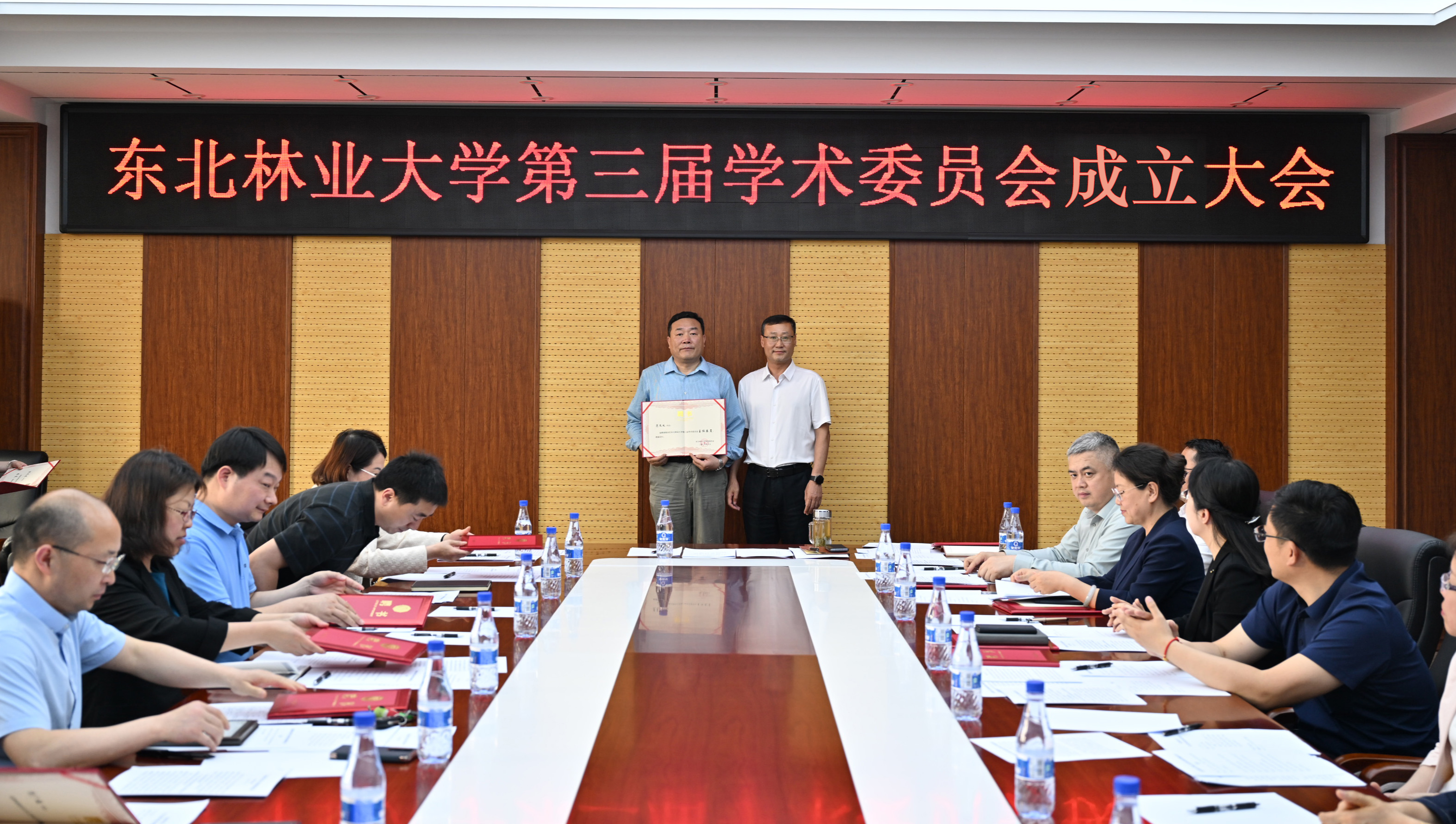 会上,何念鹏介绍了新一届学术委员会换届程序、委员席位构成及秘书处人员组成。宋文龙宣布第三届东北林业大学学术委员会主任委员、副主任委员和委员名单,并为每位委员颁发聘书。