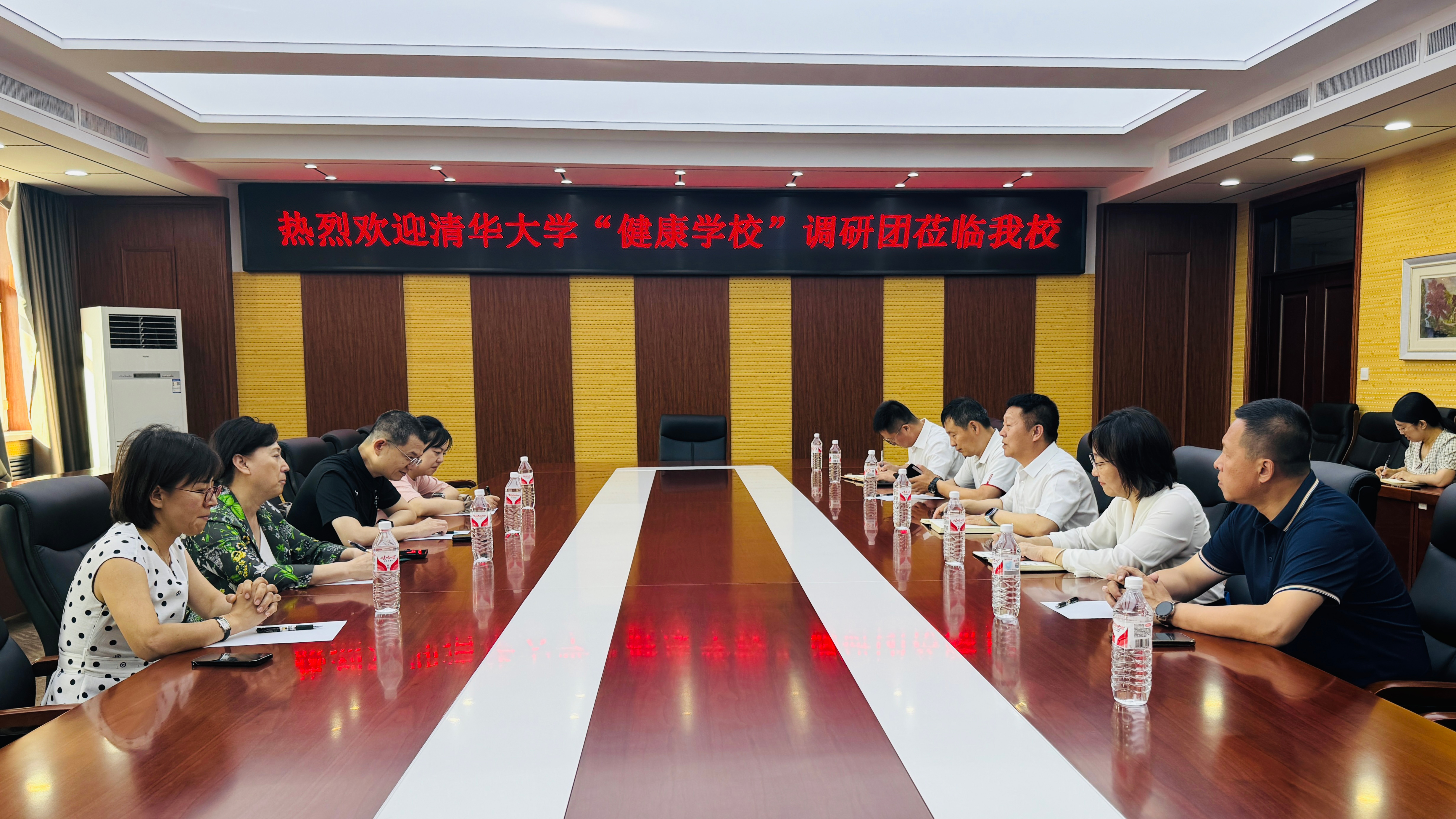 7月1日,清华大学副总务长郭建丽、总务长办公室副主任徐鹏,修缮校园管理中心园林科副主任赵坤,绿色大学办公室业务主管孙梦楠一行四人,来我校调研健康学校建设事宜。学校党委常委、副校长翟雪峰,校医院、校园建设处、体育部、后勤保障部相关负责人参加调研座谈会。