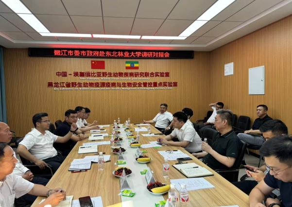 为进一步推动兽用诊断试剂产学研用一体化产业化项目,7月1日,嫩江市委市政府代表团来到我校调研并在学校黑龙江省野生动物疫源疫病与生物安全管控重点实验室会议室举行座谈会。学校党委常委、副校长于海鹏,嫩江市委书记兼市长崔凯,双方单位相关部门领导及嫩江市部分企业领导出席会议。