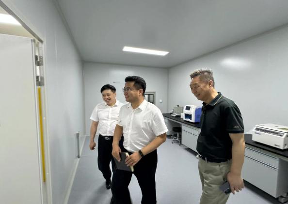 会前,于海鹏陪同崔凯一行参观了学校重点实验室新建成的分子病毒学实验室、全自动细胞培养室。