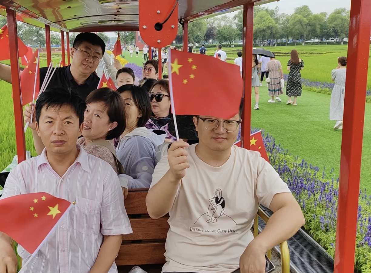 以大地为纸、水稻为墨,党外知识分子站在观景台上俯瞰由转基因技术培育的不同颜色的水稻秧苗组成的“三江有亩田”“数字北大荒”等稻田画,领略了风吹稻浪的美景和现代农业科技的魅力。