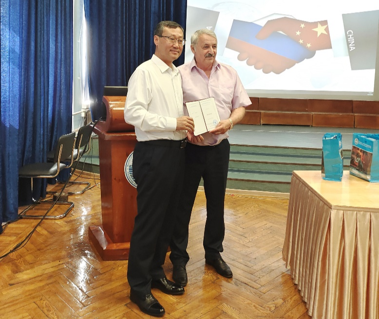 7月16日上午,宋文龙一行访问俄罗斯科学院西伯利亚分院梅尔尼科夫冻土研究所,与所长、俄罗斯科学院院士热列兹尼亚克,就依托“中俄寒区工程与环境联合实验室”在北极地区开展冻土、森林生态、气候环境变化以及中俄跨境重大工程等方向的合作研究进行了深入交流,并签署了北极科技合作协议。会后,热列兹尼亚克代表冻土研究所学术委员会分别授予校长宋文龙、金会军教授以及张泽教授三人冻土研究所“荣誉教授”称号,表彰其在中俄科研交流合作中做出的突出贡献。