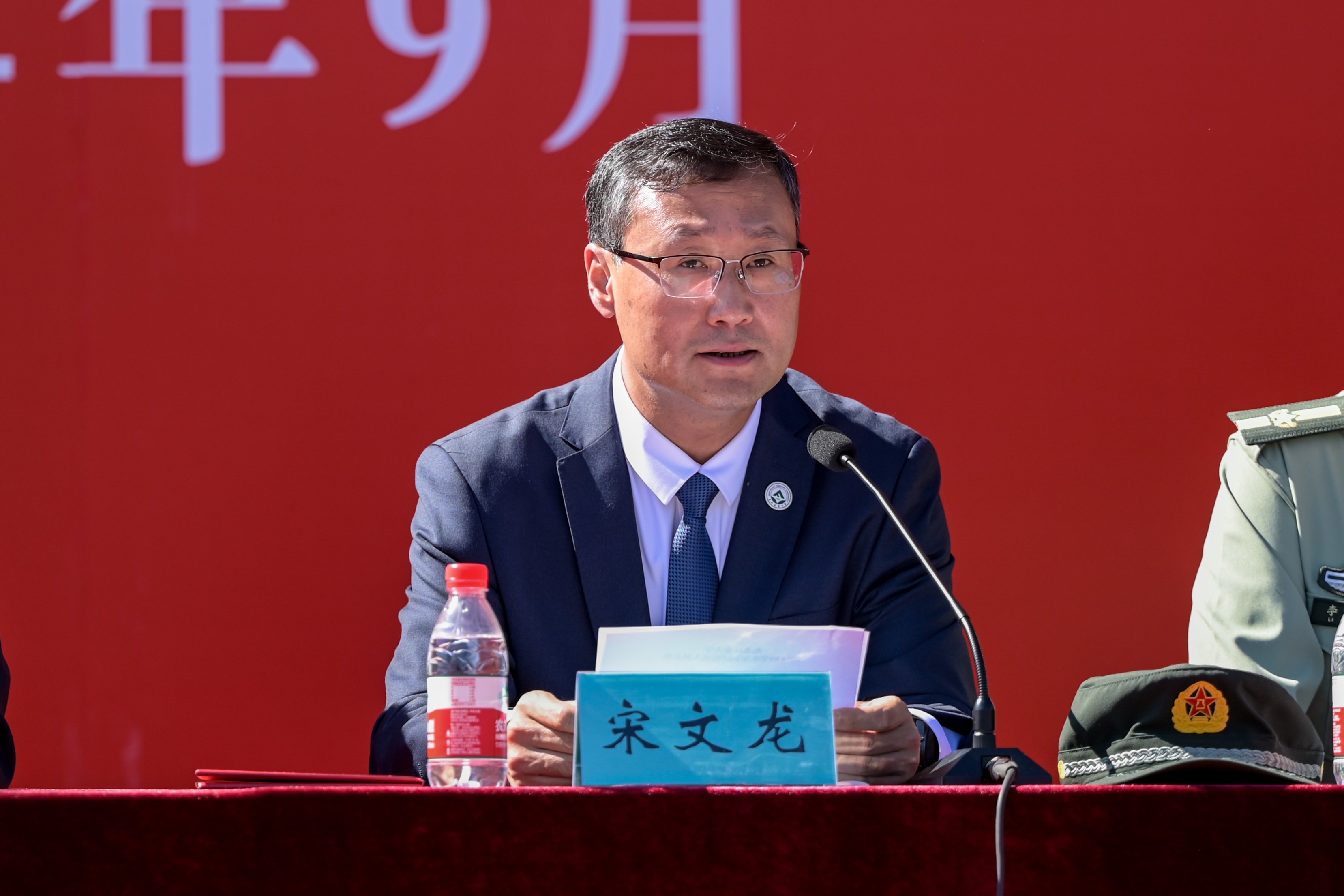 学校党委书记张志坤,校长宋文龙,来校承训单位、中国人民解放军某部队副旅长王铁军,党委常委、副校长、2024级学生军训团团长李明泽,党委常委、副校长、军训团政委张春雷,军训团参谋部、政治处、各营营长和教导员、军训团主要成员、参训官兵,由我校退伍大学生、国旗护卫队教官、国防教育中心学生组成的学生教官,以及学校2024级全体本科新生参加动员大会。学校党委学生工作部部长、武装部部长、学生处处长、学生军训团参谋长于洋主持大会。