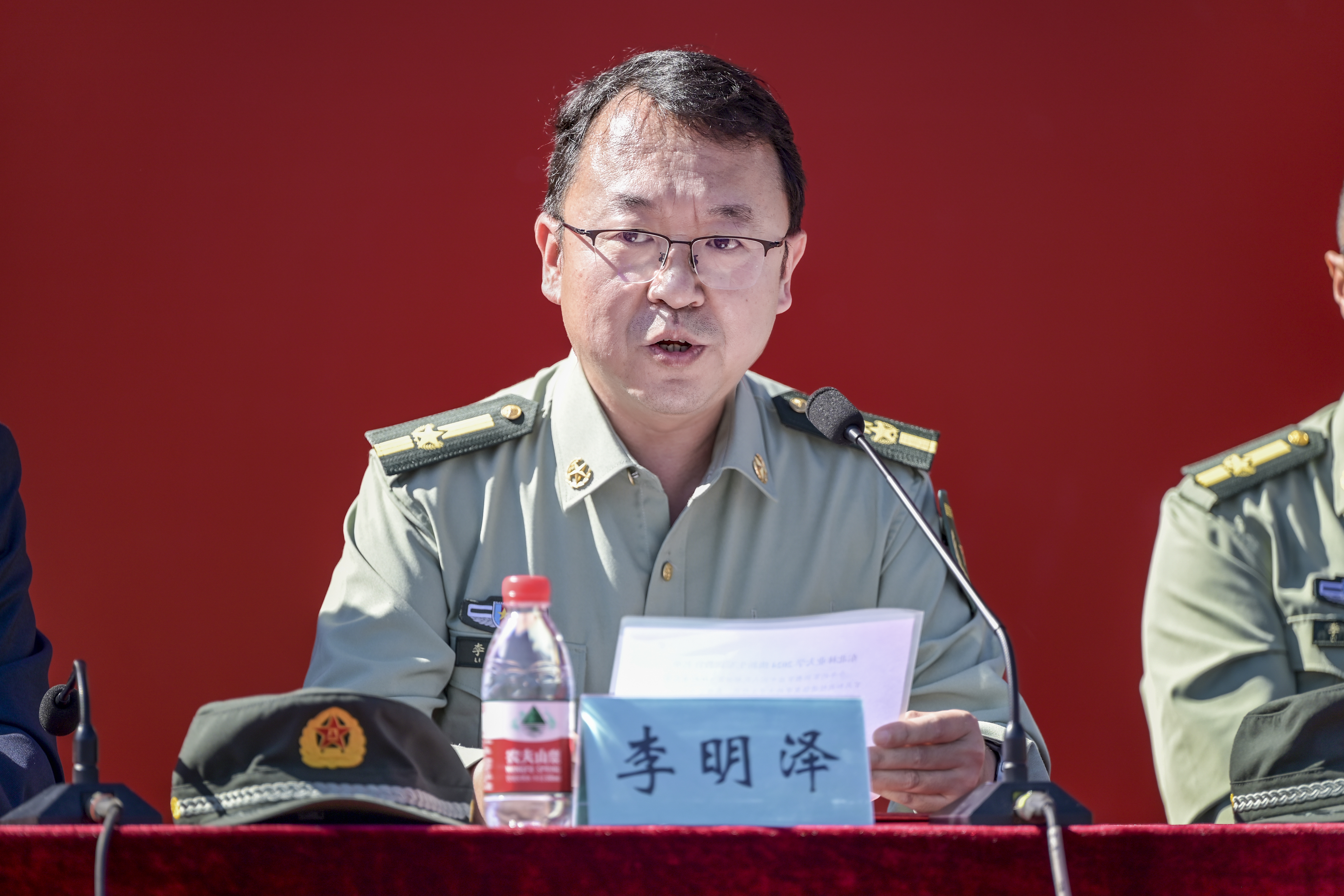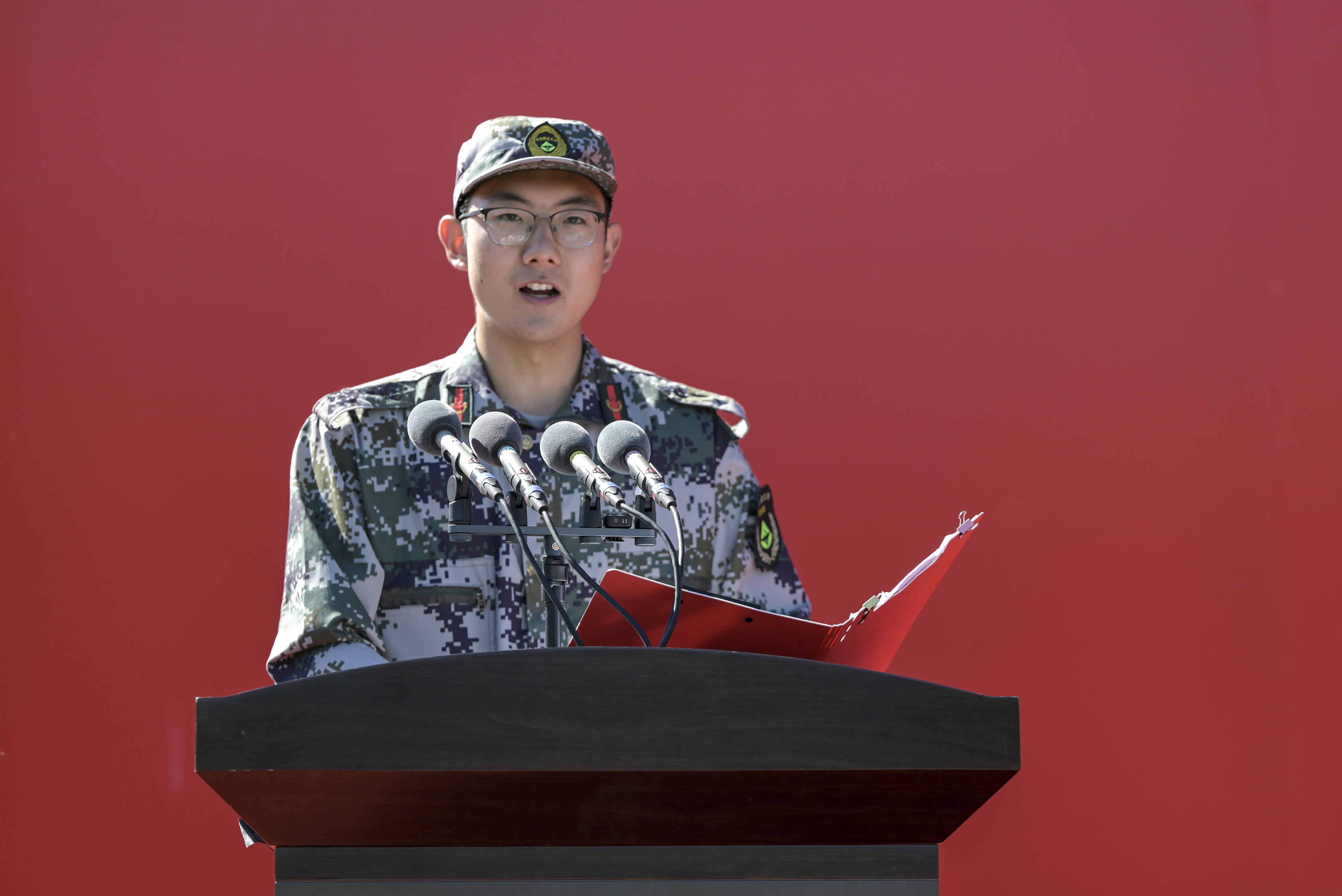 新生代表、野生动物与自然保护地学院野生动物与自然保护区管理专业学生吴海锋代表全体参训新兵作出庄严承诺。承训教官代表、中国人民解放军某部队二级上士刘金松作表态发言。