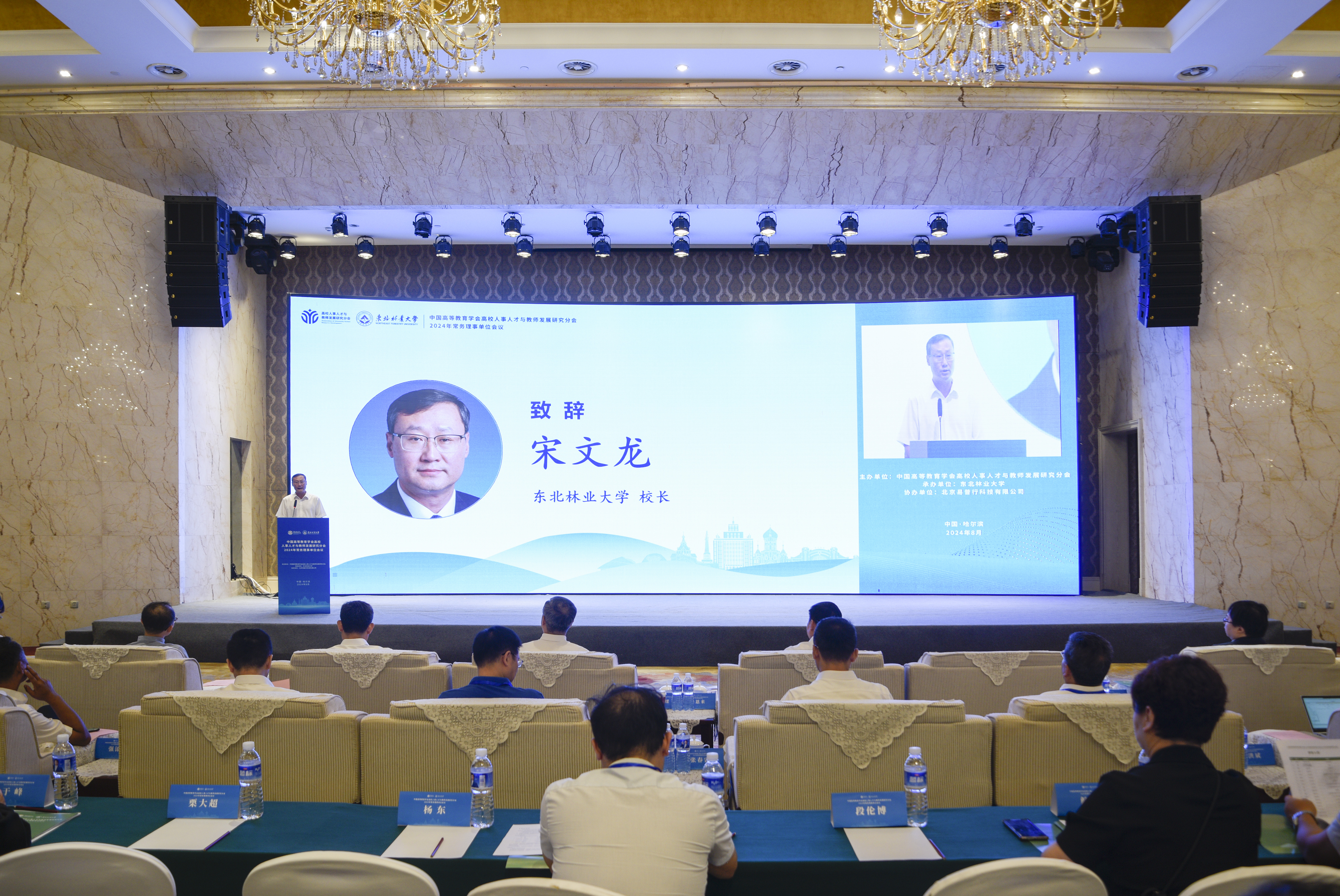 8月31日,由中国高等教育学会高校人事人才与教师发展研究分会主办、东北林业大学承办的2024年高校人事人才与教师发展研究分会常务理事会在哈尔滨举行。中国高等教育学会副会长姜恩来,中国高等教育学会高校人事人才与教师发展研究分会理事长姜胜耀,黑龙江省教育厅一级巡视员姜同河,东北林业大学校长宋文龙,东北林业大学党委常委、副校长张春雷等出席会议。来自教育部人事司、教师工作司等上级部门及清华大学、北京大学、香港科技大学等全国70余所高校的200余位领导、人事专家、代表参会。