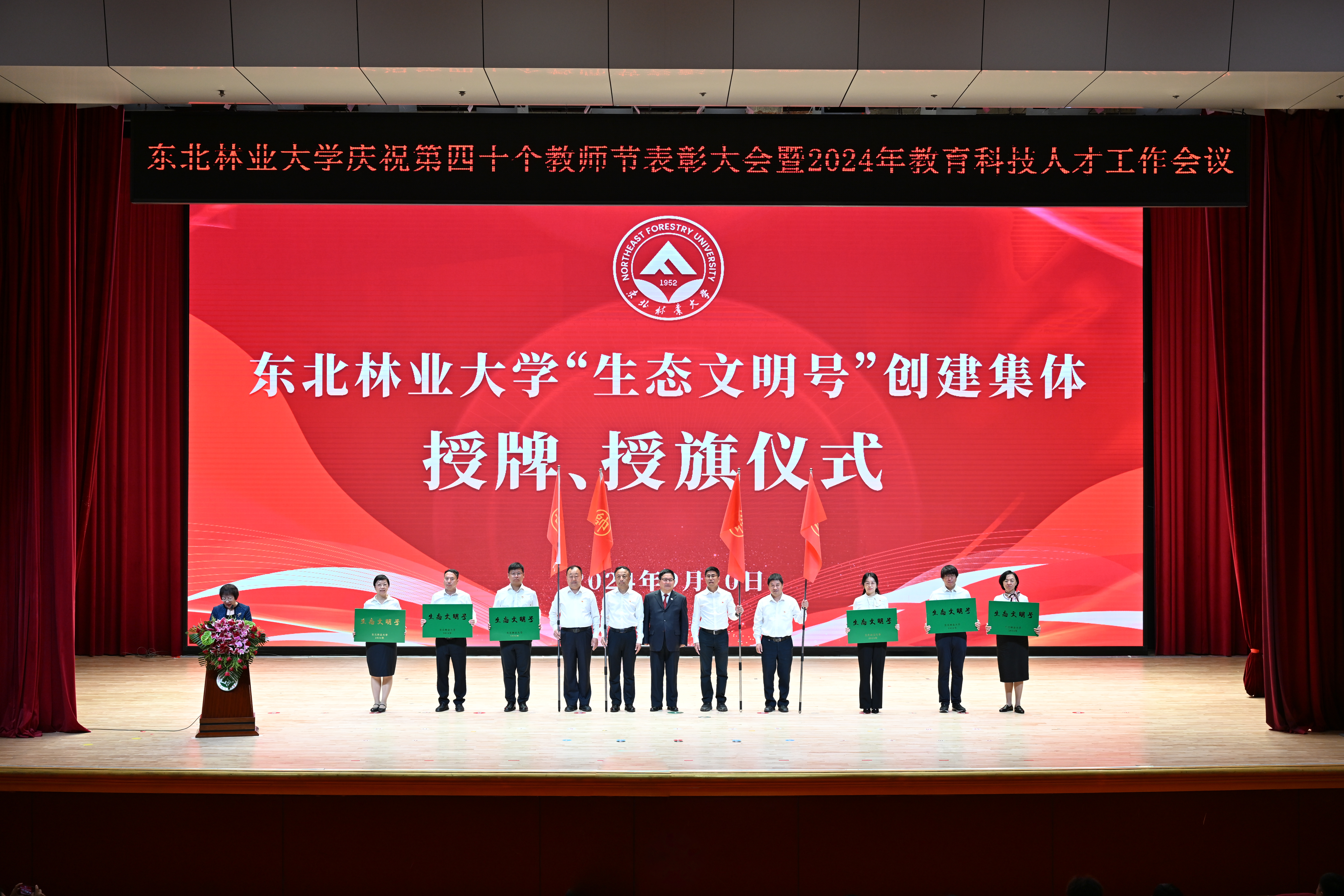 为持续助力生态文明建设,今年7月,学校党委启动第二批“生态文明号”创建工作。东北森林碳汇评估与可持续经营创新团队、东北盐碱植被恢复与资源利用教育部重点实验室团队、本科教育教学生态赋能团队、机电工程学院林下食品科技小院集群团队等4个集体成为第二批东北林业大学“生态文明号”创建单位。张志坤为第二批“生态文明号”创建团队授旗。