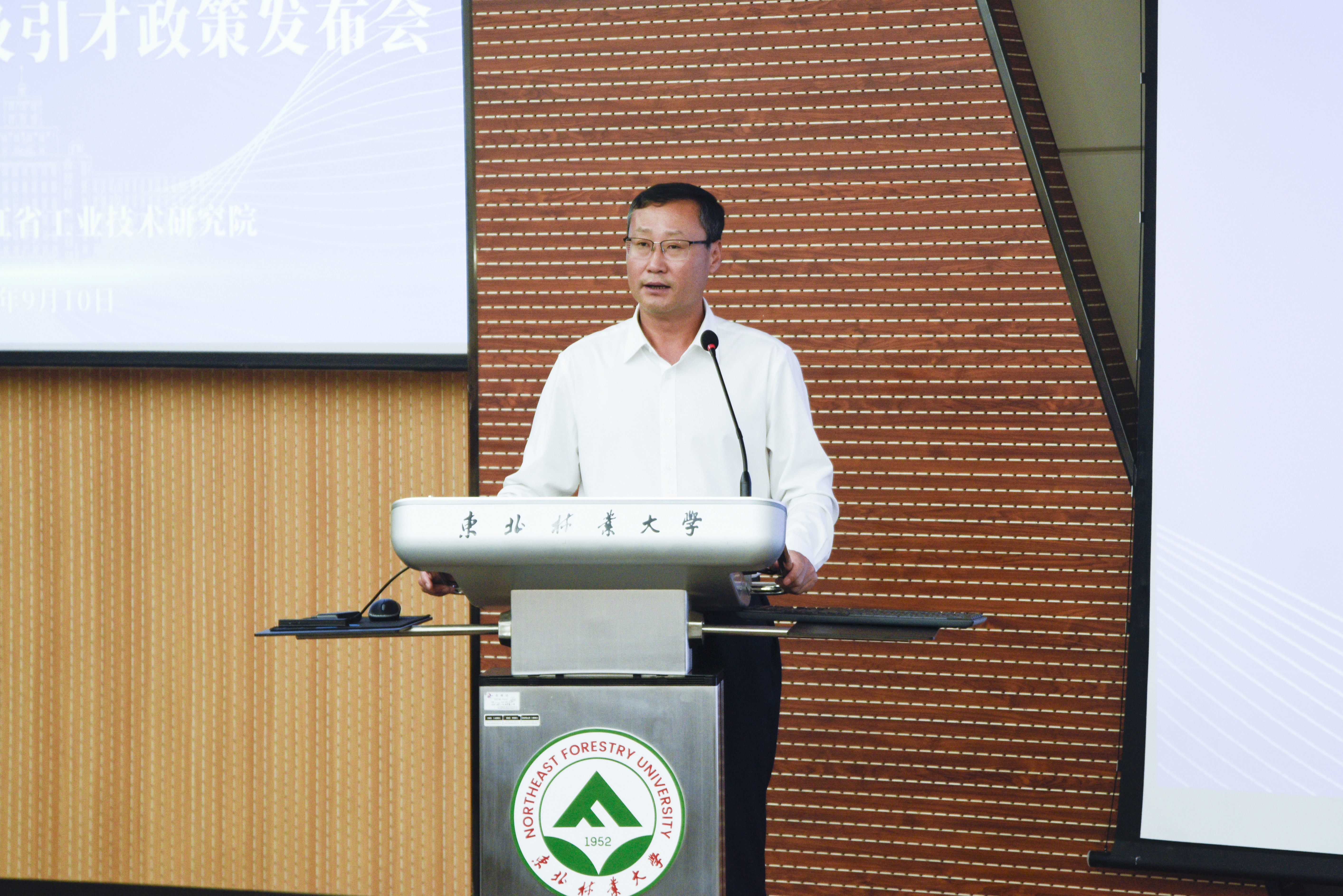 校长宋文龙在发布会上讲话。他表示,学校梳理了长期以来在相关领域科技创新取得的成果,举办此次发布会,目的就是希望科技成果能够走出校园,在龙江落地生根,服务地方经济社会发展,支撑国家战略。他表示,东林因林而生、因林而兴,扎根祖国北疆,守护绿水青山、致力生态文明,东林人始终以生态报国作为责任担当,以服务龙江经济社会发展作为重要使命,建校72年来,培养了20余万名毕业生,为国家的林业事业作出了突出贡献。他强调,东林始终强调广大教师的科技成果要做到“顶天立地”,既服务国家战略需求和关键科技领域,也要深入基层一线,把论文写在林区、写在祖国的大地上,用科技力量为绿色龙江建设作贡献。