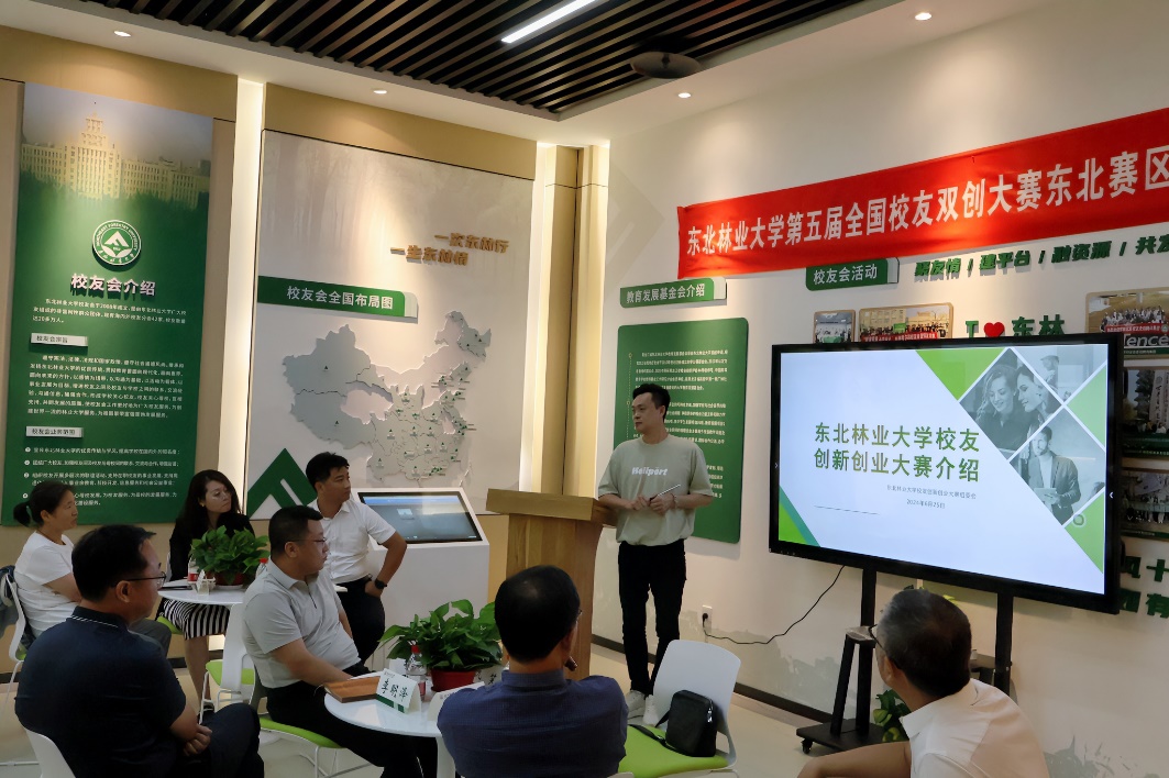 9月9日,东北林业大学第五届全国校友双创大赛东北赛区·哈尔滨推介会在学校校友之家召开,学校党委常委、副校长李明泽,工程咨询设计研究院董事长潘建平,本科生院副院长兼培养处处长、教师发展中心主任、创新创业中心主任杨洪学,校友工作办公室主任姚远,校友总会副会长、校友双创大赛组委会秘书长、深圳校友会会长仇笑,哈尔滨校友会会长林日新,哈尔滨校友会秘书长黄冬冬,校友工作办公室副主任姚帅男,以及在哈校友代表、在校学生代表参加,推介会由大赛组委会副秘书长张立垚主持。