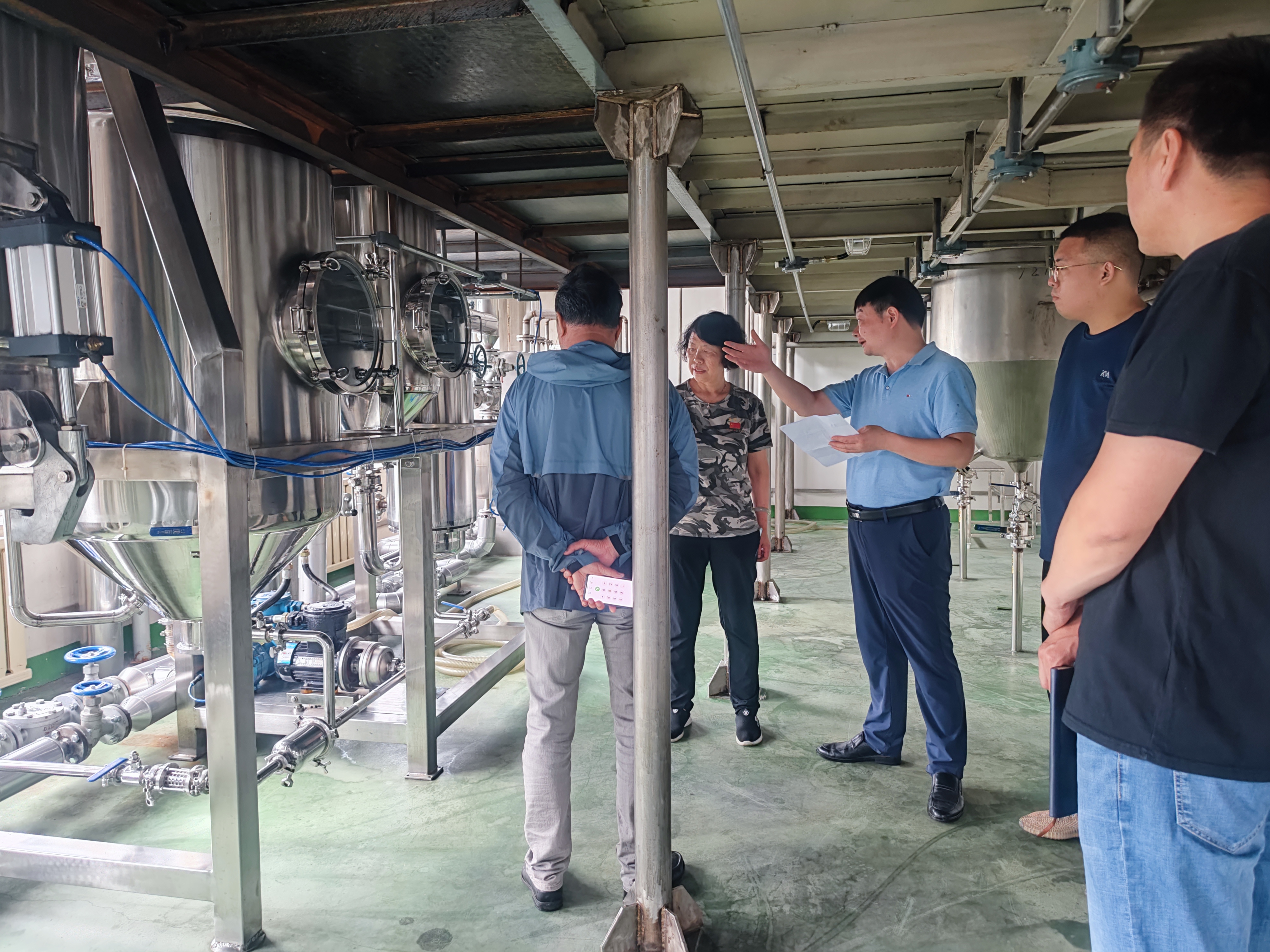 赵修华(左三)与研究生在伊春中盟生物科技股份有限公司开展合作交流