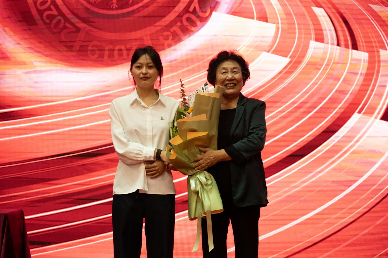 讲座结束后,思想政治教育专业2024级硕士研究生龚芷萱,代表全体2024级东林新生为陈文斌教授献上鲜花,向为学校发展作出重要贡献的东林前辈致以衷心感谢和崇高敬意,现场回响起热烈掌声。