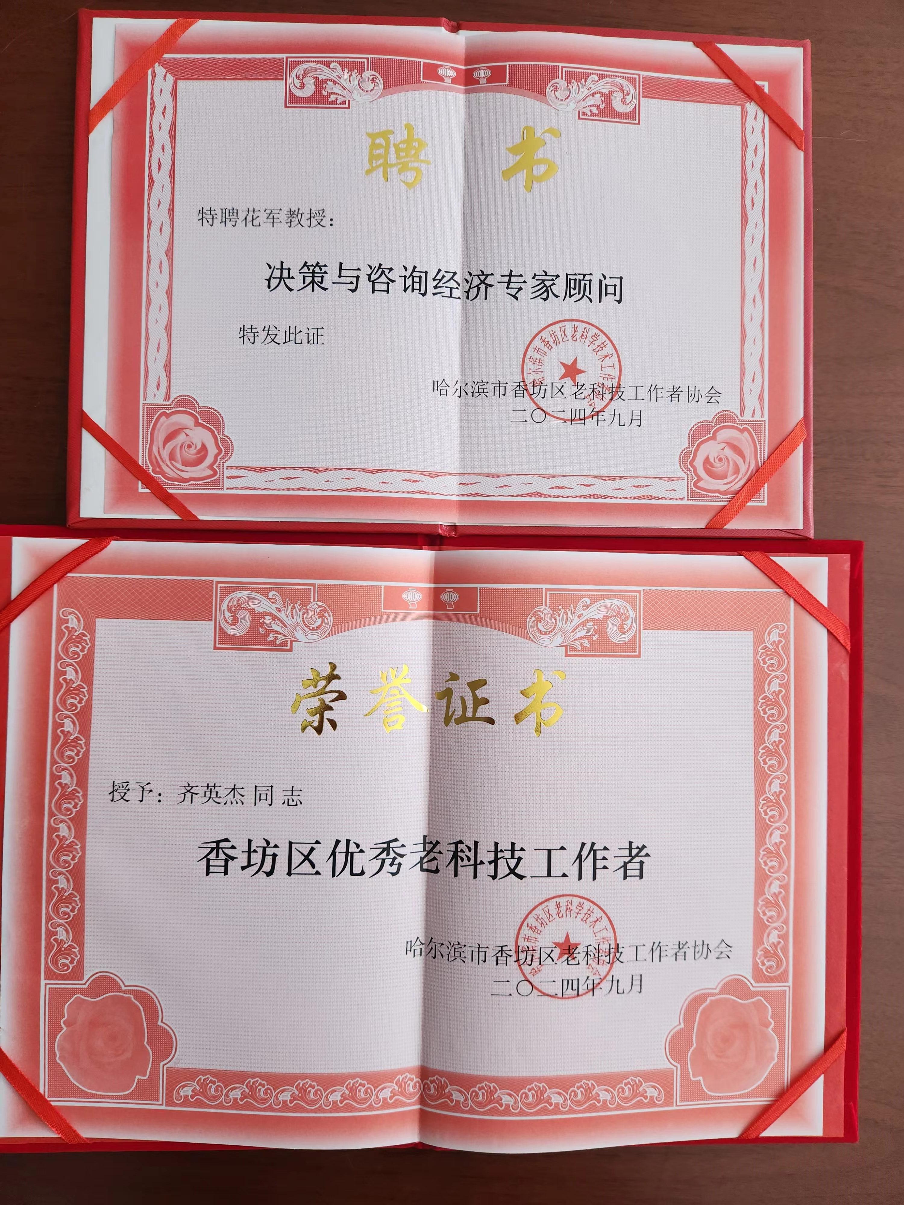 9月26日,哈尔滨市香坊区老科学技术工作者协会召开了第四届代表大会,我校老科技工作者协会副会长齐英杰研究员荣获“先进老科技工作者”称号,花军教授被香坊区老科协聘为“决策与咨询经济专家顾问”。
