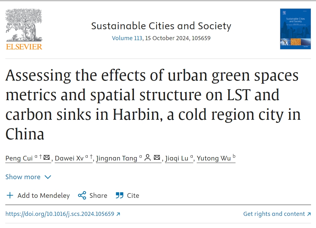 近日,我校园林学院崔鹏副教授团队研究生路佳琪、唐静楠等在工程技术领域权威期刊sustainable cities and society(中科院1区Top IF:10.7 1/379)发表2篇代表性成果,本科生李诗雨在land(中科院2区)发表1篇研究成果。