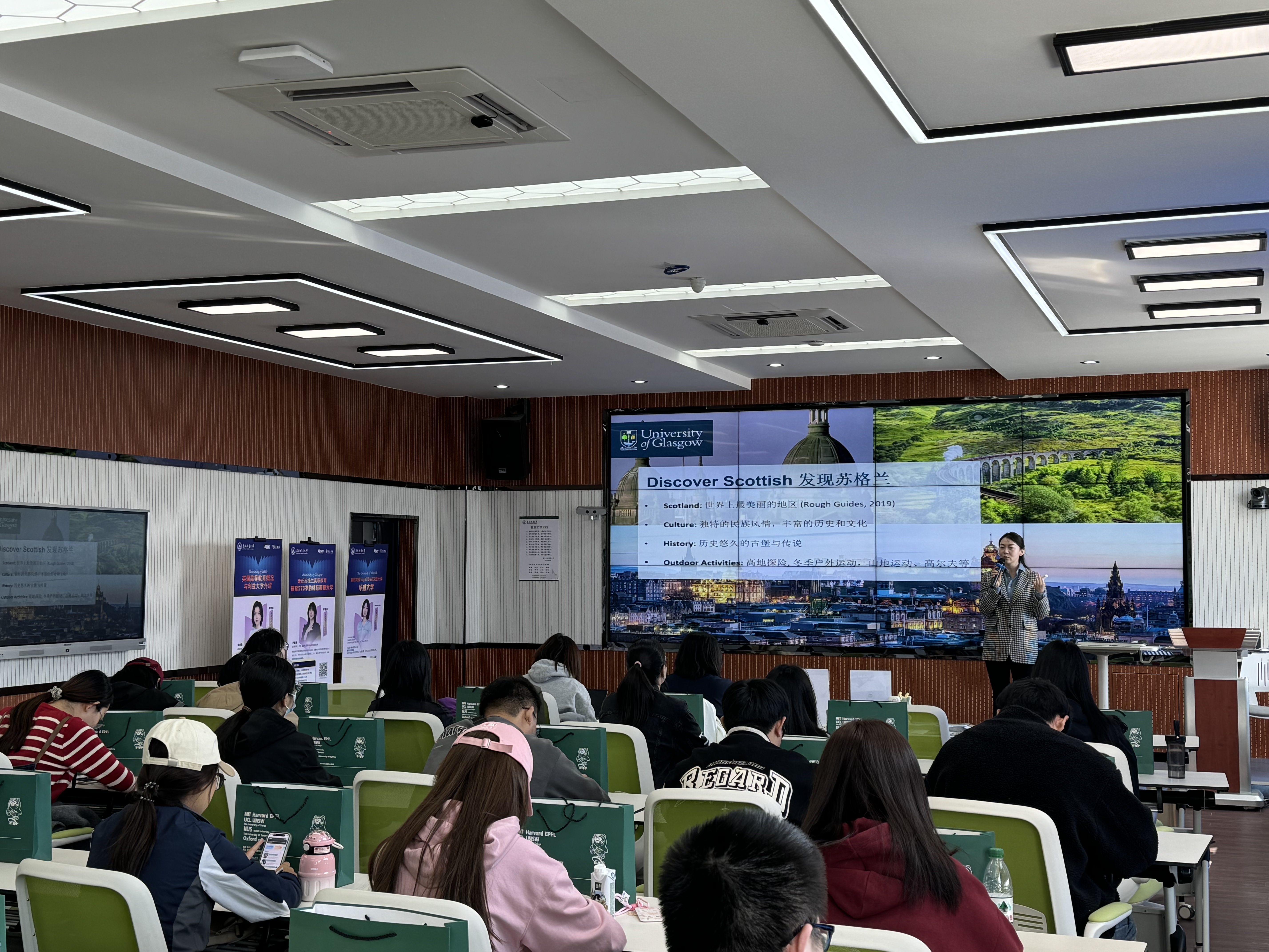 格拉斯哥大学位于苏格兰第一大城市格拉斯哥,始建于1451年,是英语系国家中第四古老的大学,世界排名第78位。学校拥有600多个本科联合学位,260个研究生专业,70多个博士培养方向。格拉斯哥大学招生官尹馨婧为同学们介绍了苏格兰的风土人情、格拉斯哥大学的基本情况及热门专业,并为同学们解析了2025年录取的新要求。