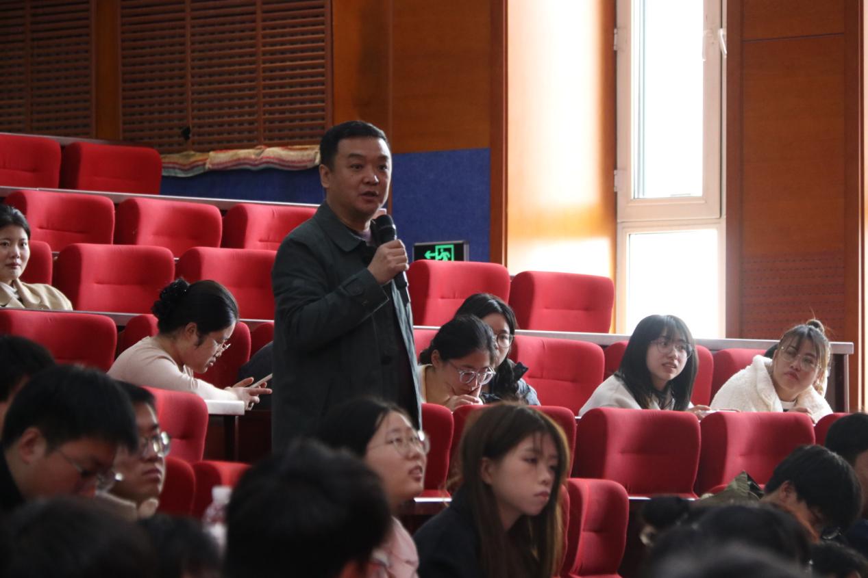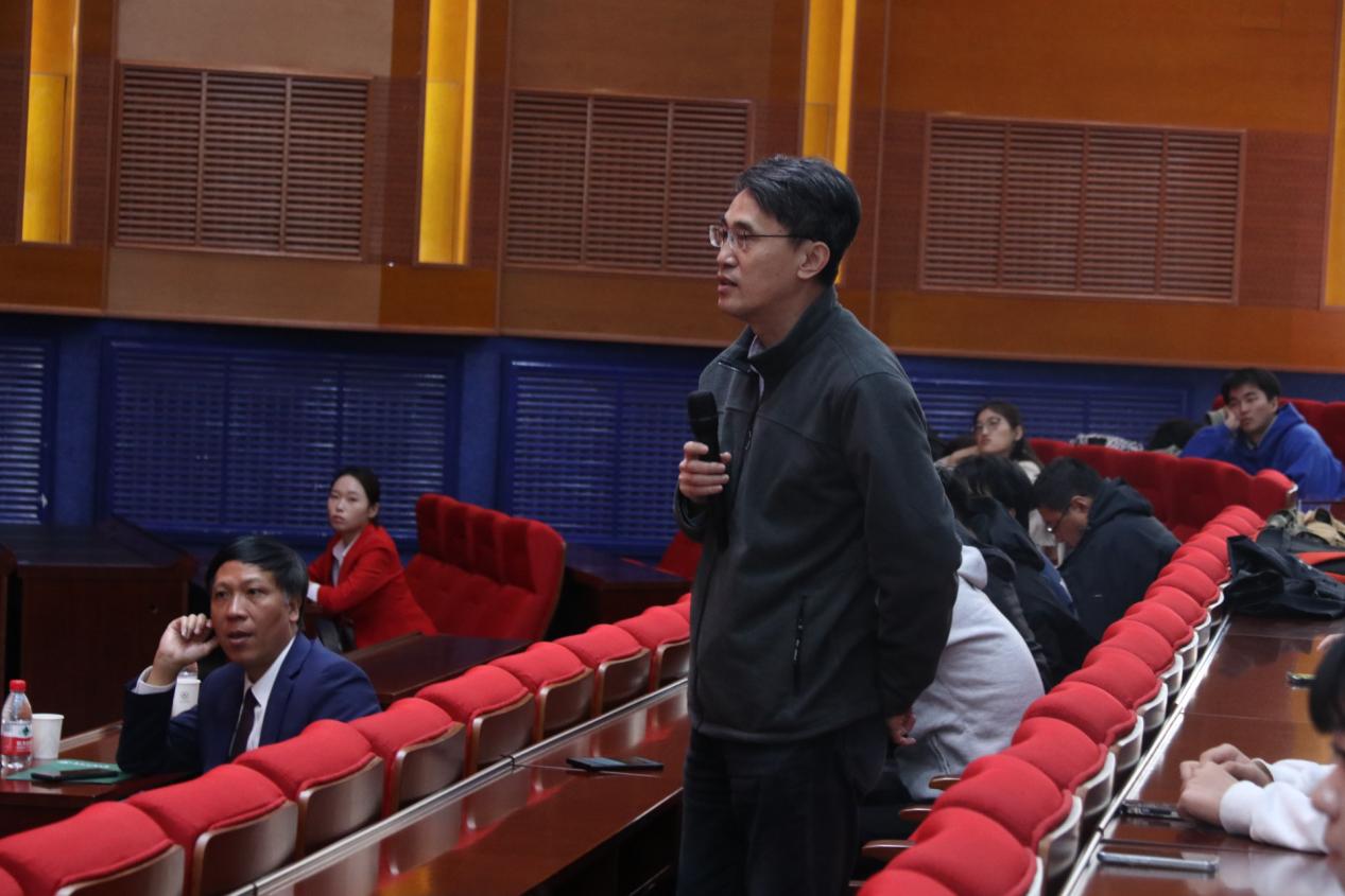 两位教授讲解过后,教师张力滨与李国东分别针对面对台风危害在工程中的应对措施,及如何将房屋建设与危害图进行统一这两方面的问题向两位教授请教。两位教授针对具体问题进行了解答,也引发了在场同学们的讨论与思考。